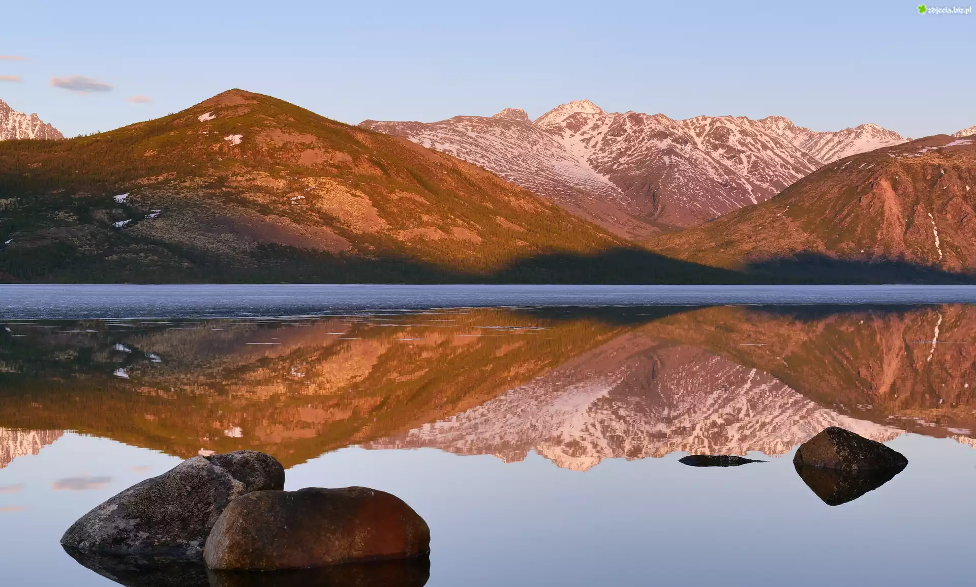 Zdjęcie, Góry Kołymskie, Jezioro Jack London, Odbicie, Kamienie, Kołyma, Obwód magadański, Rosja