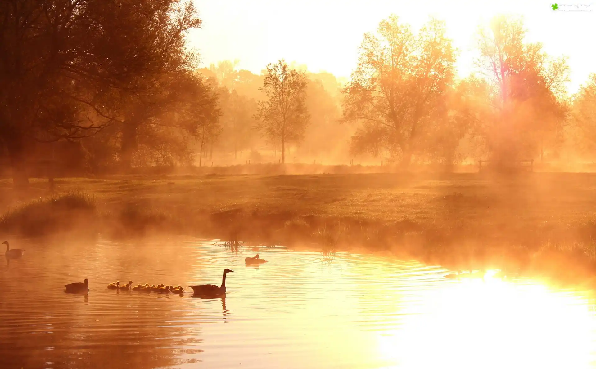 Zdjęcie Świt, Mgła, Jezioro, Gęsi