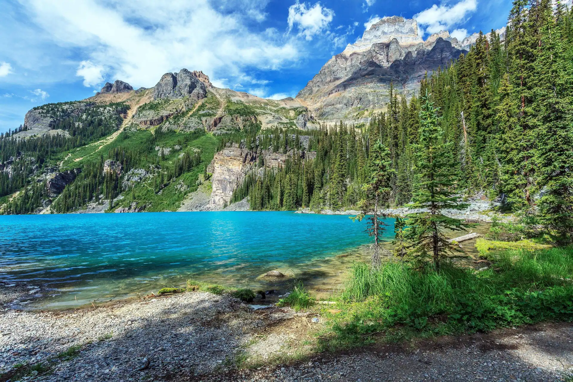 Zdjęcie Kanada, Park Narodowy Yoho, Jezioro O'Hara, Góry, Drzewa