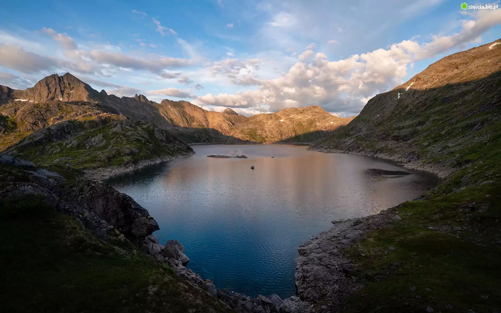 Zdjęcie Góry, Jezioro, Niebo, Białe, Chmury
