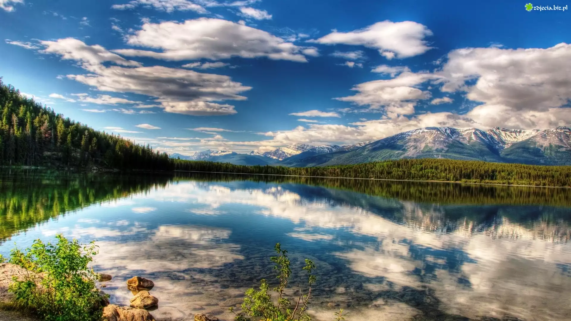 Zdjęcie Jezioro, Las, Góry, Niebo, Chmury