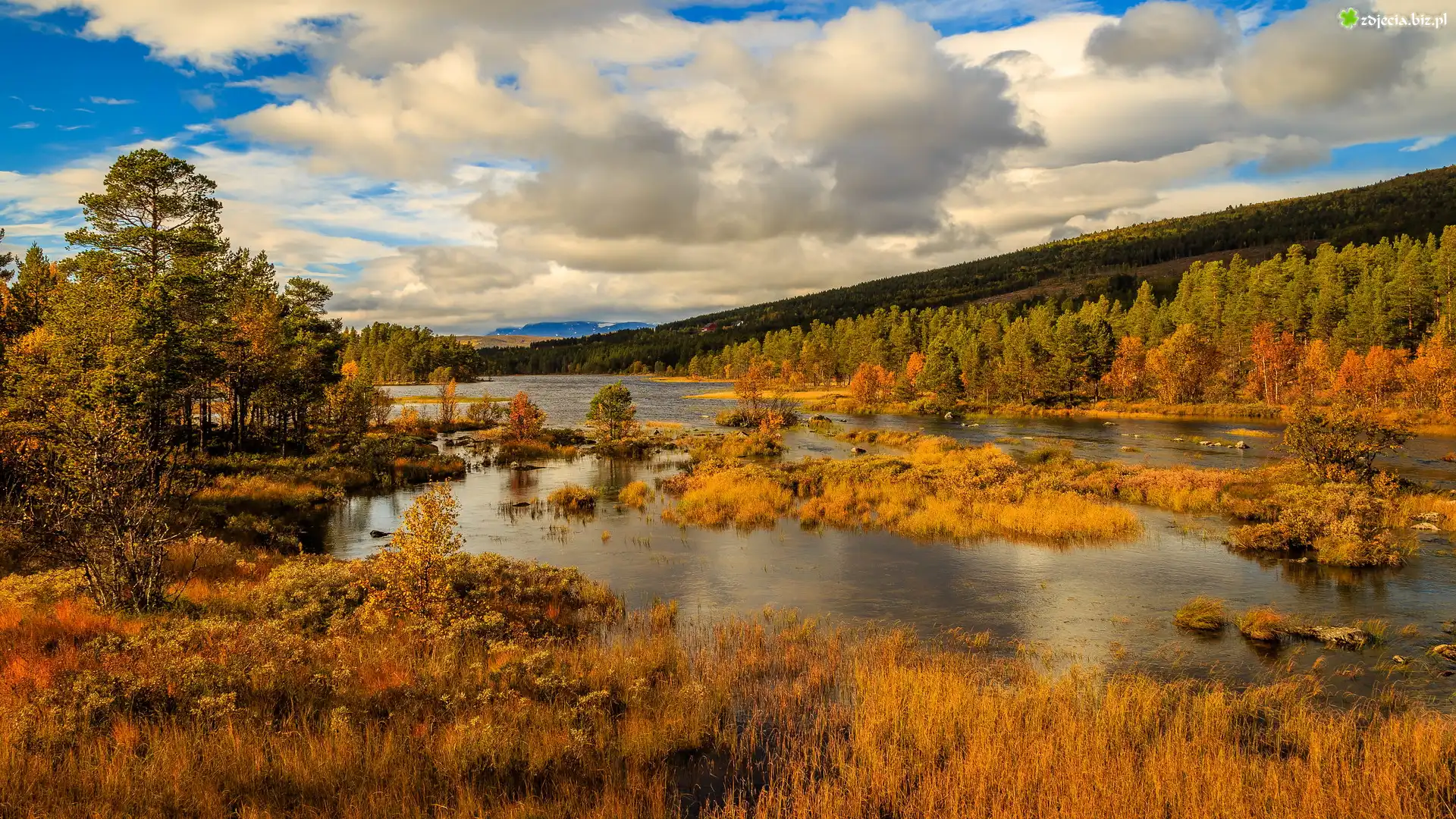 Zdjęcie Jesień, Jezioro, Drzewa, Lasy, Park Narodowy Hardangervidda, Norwegia