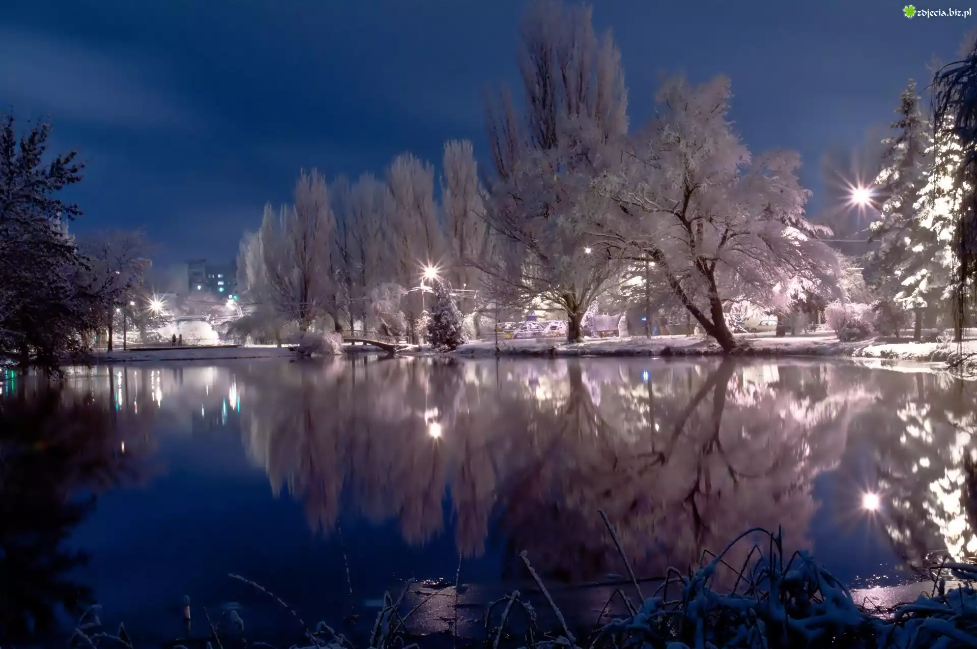Zdjęcie Jezioro, Drzewa, Odbicie, Zima