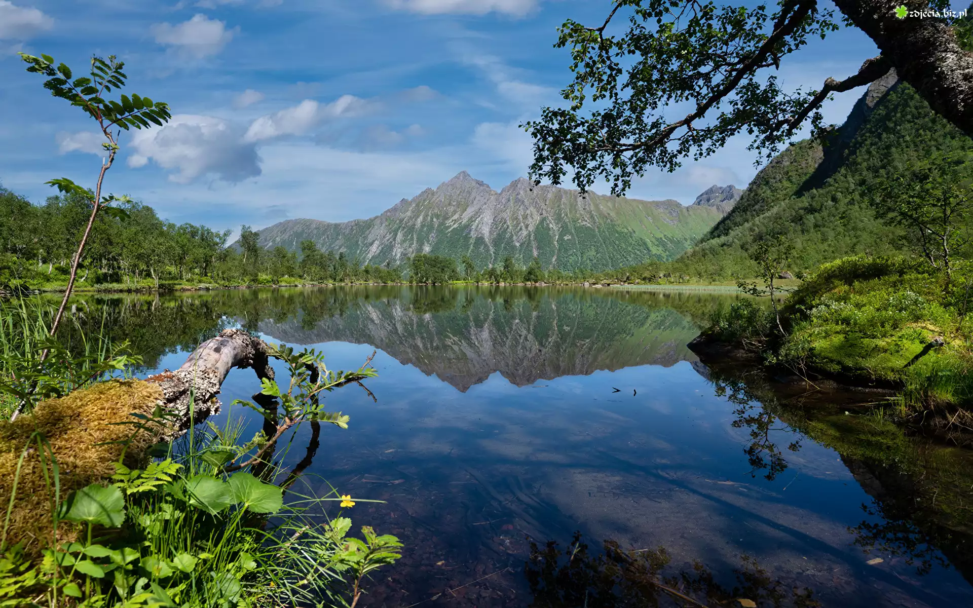 Zdjęcie Góry, Jezioro, Odbicie, Drzewa, Rośliny