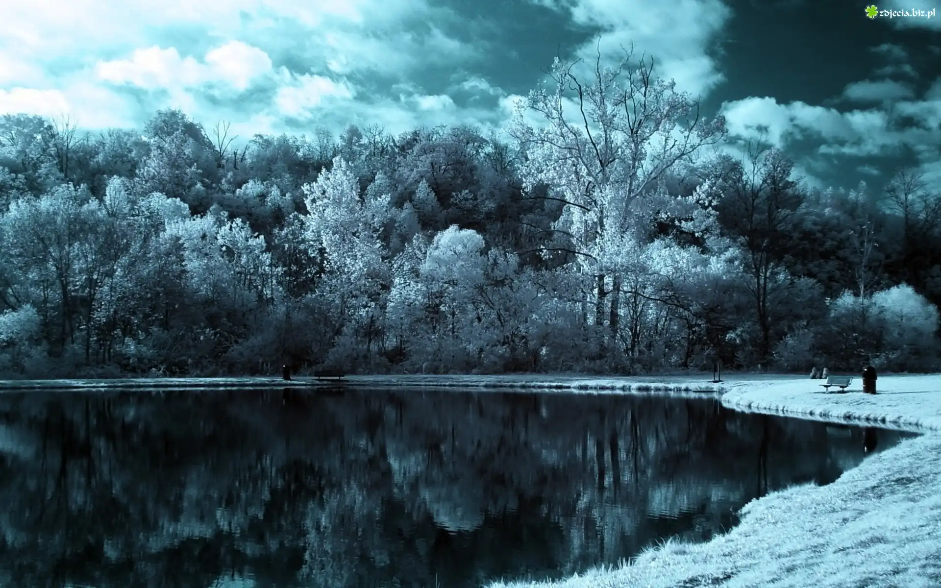 Zdjęcie Jezioro, Drzewa, Park, Zima