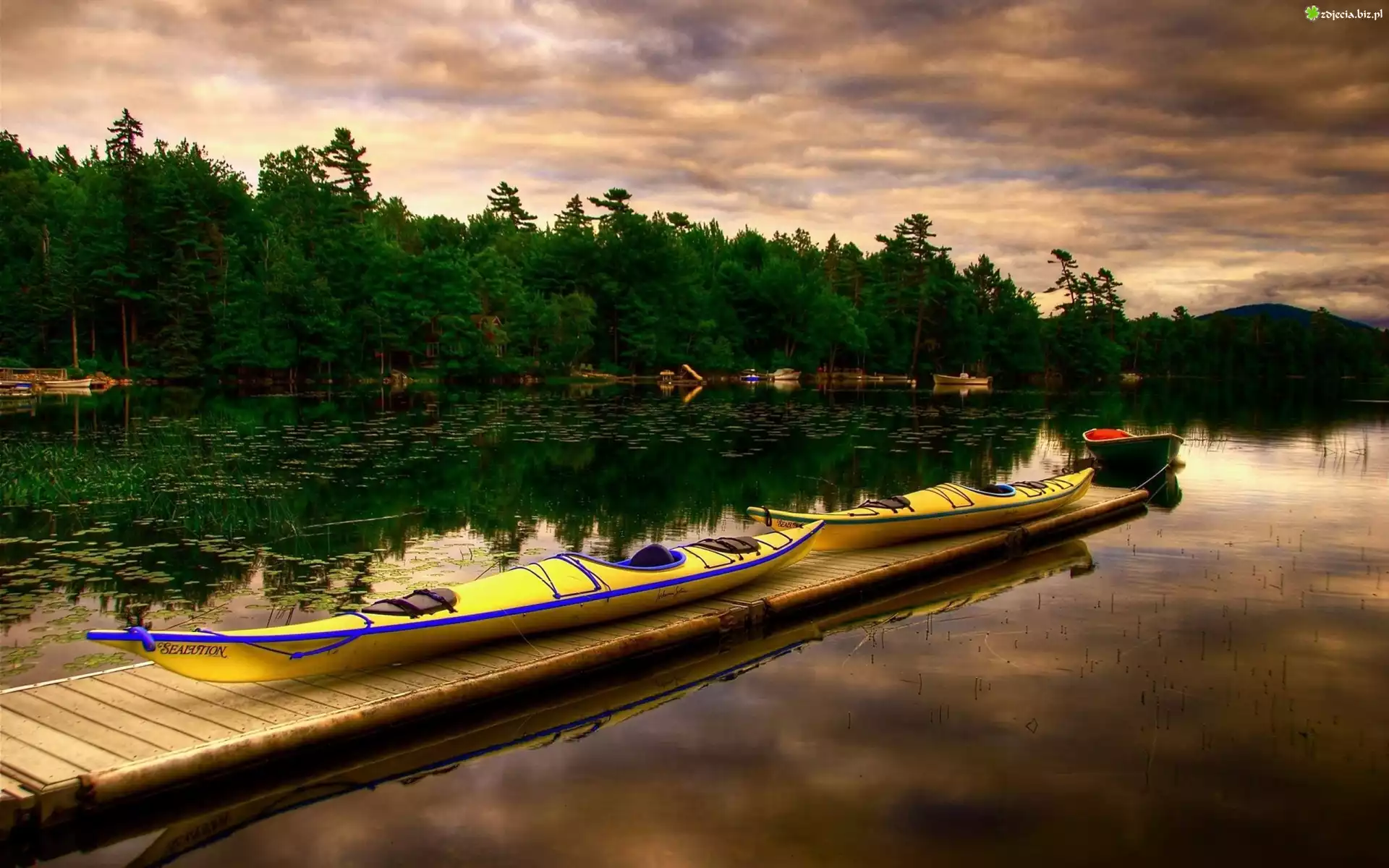 Zdjęcie, Jezioro, Łódki, Pomost, HDR