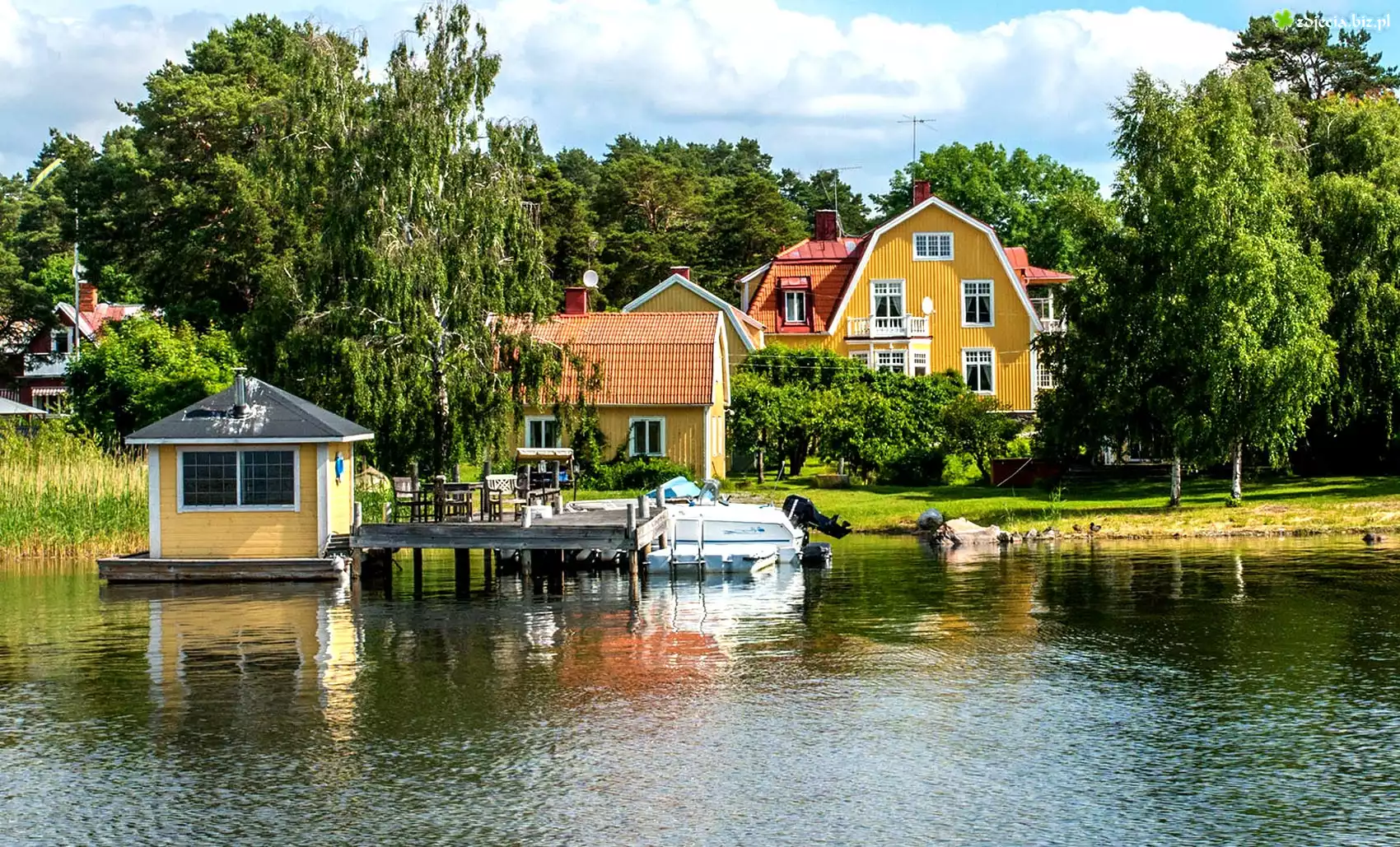 Zdjęcie, Jezioro, Dom, Posesja, Drzewa