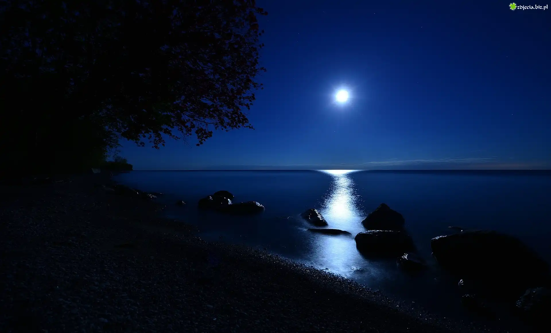 Zdjęcie Jezioro, Noc, Poświata, Księżyca