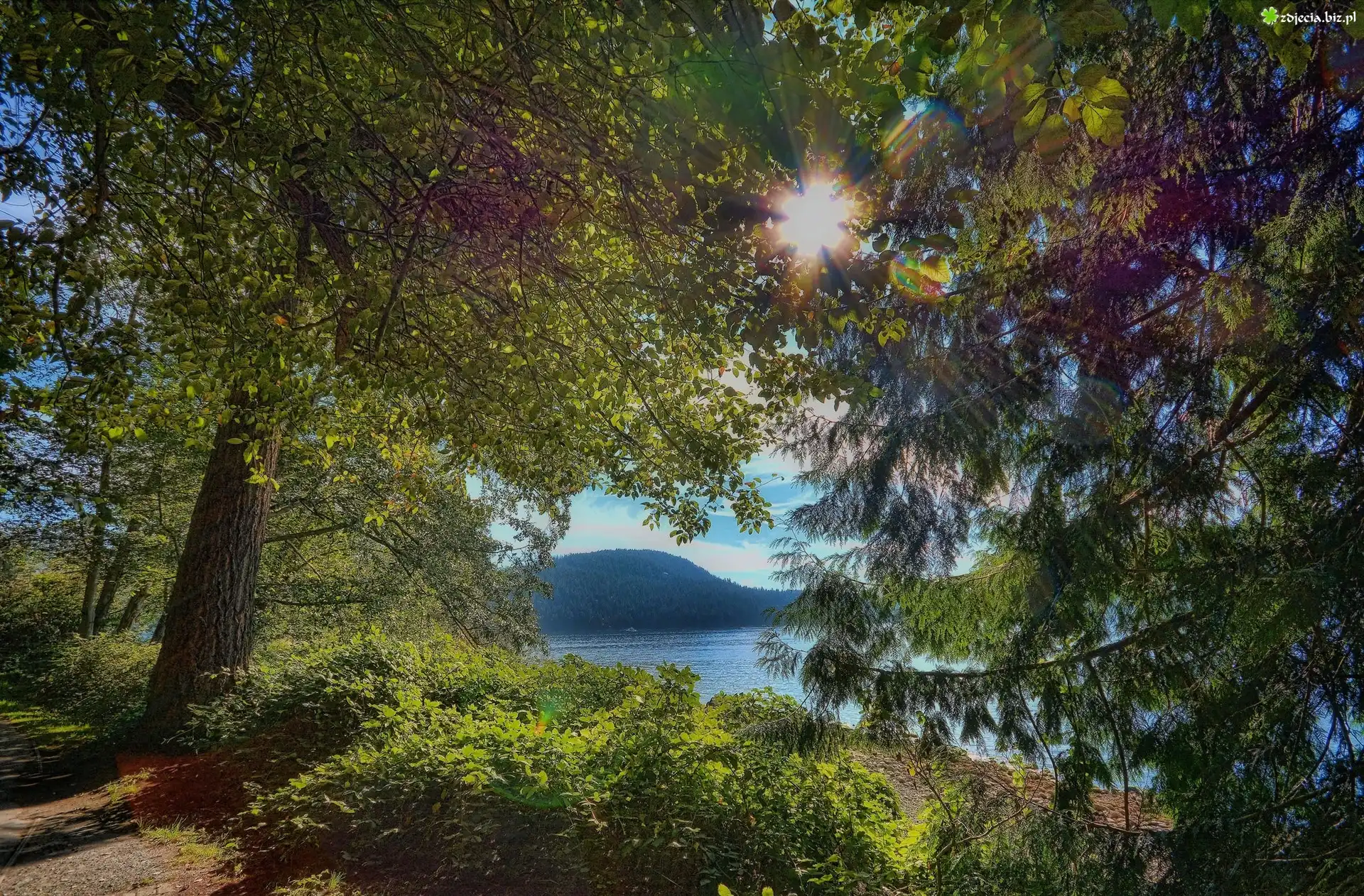 Zdjęcie Jezioro, Drzewa, Promienie, Słońca
