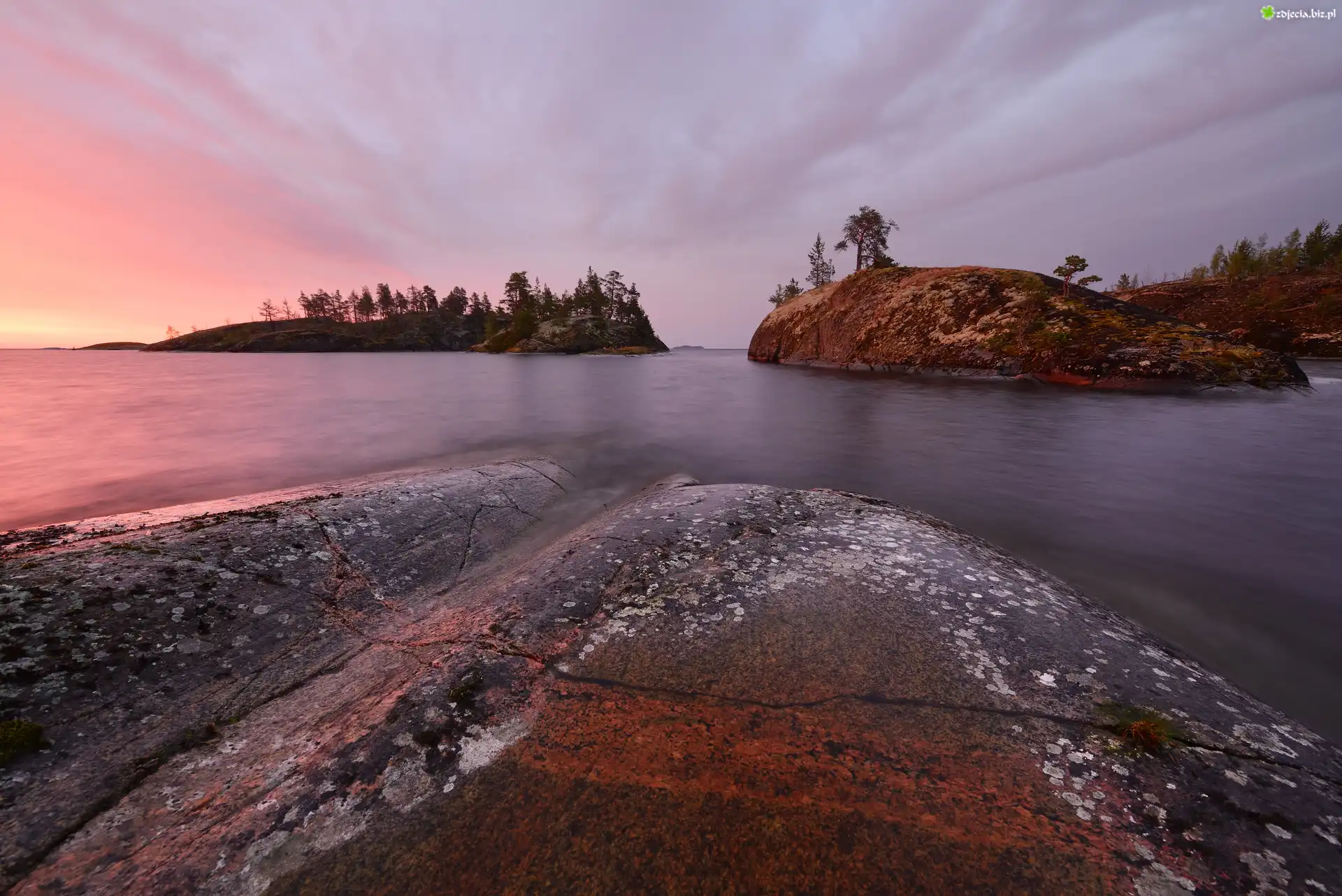 Zdjęcie,  Jezioro Ładoga, Wysepki, Skały, Drzewa, Karelia, Rosja