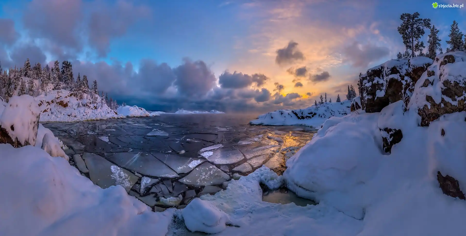 Zdjęcie, Rosja, Jezioro Ładoga, Zima, Lód, Wschód słońca