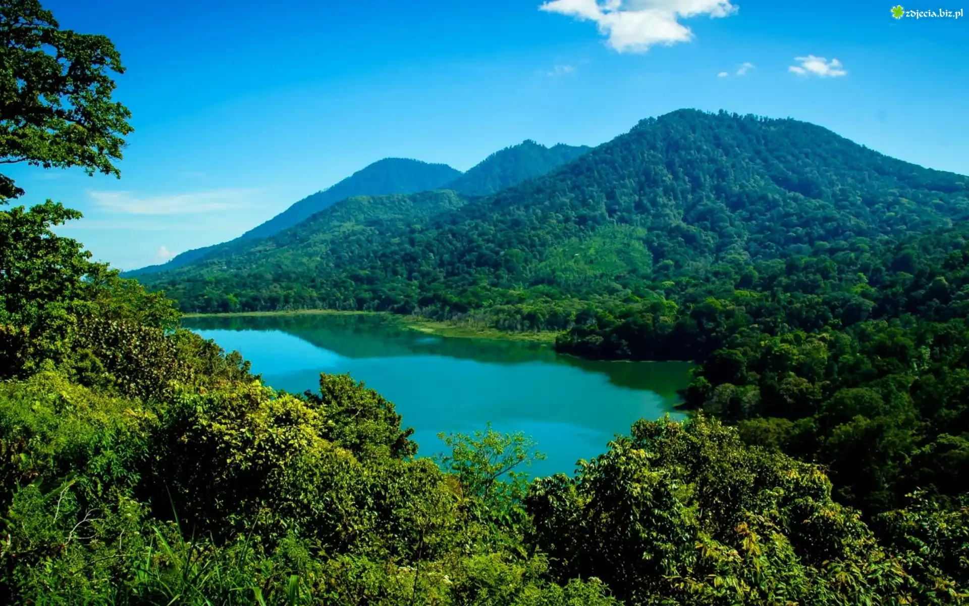 Zdjęcie Jezioro, Góry, Roślinność, Drzewa