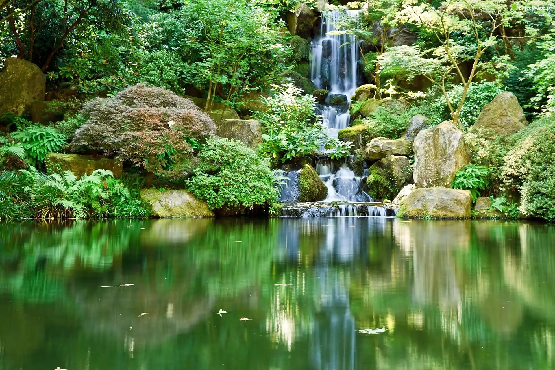 Zdjęcie Jezioro, Las, Skały, Wodospad