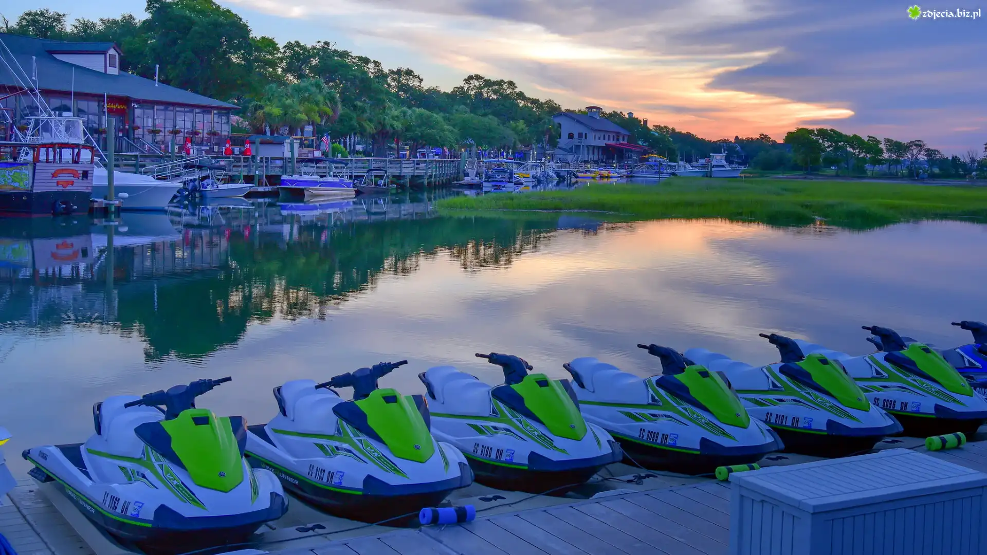 Zdjęcie Jezioro, Przystań, Łódki, Skutery wodne