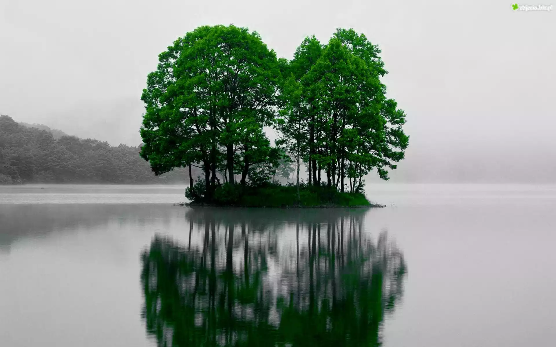 Zdjęcie Jezioro, Wysepka, Drzewa, Sohara, Japonia