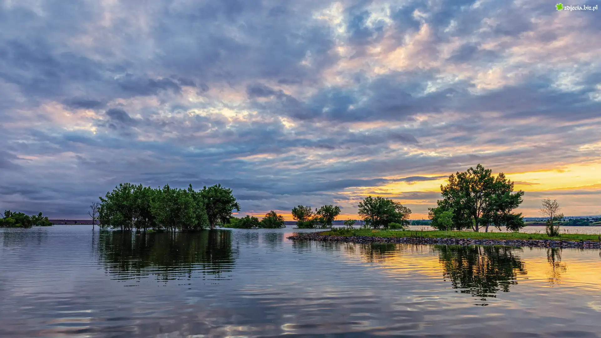 Zdjęcie Stany Zjednoczone, Kolorado, Park stanowy, Chatfield State Park, Jezioro, Chatfield Lake, Drzewa, Chmury, Niebo |