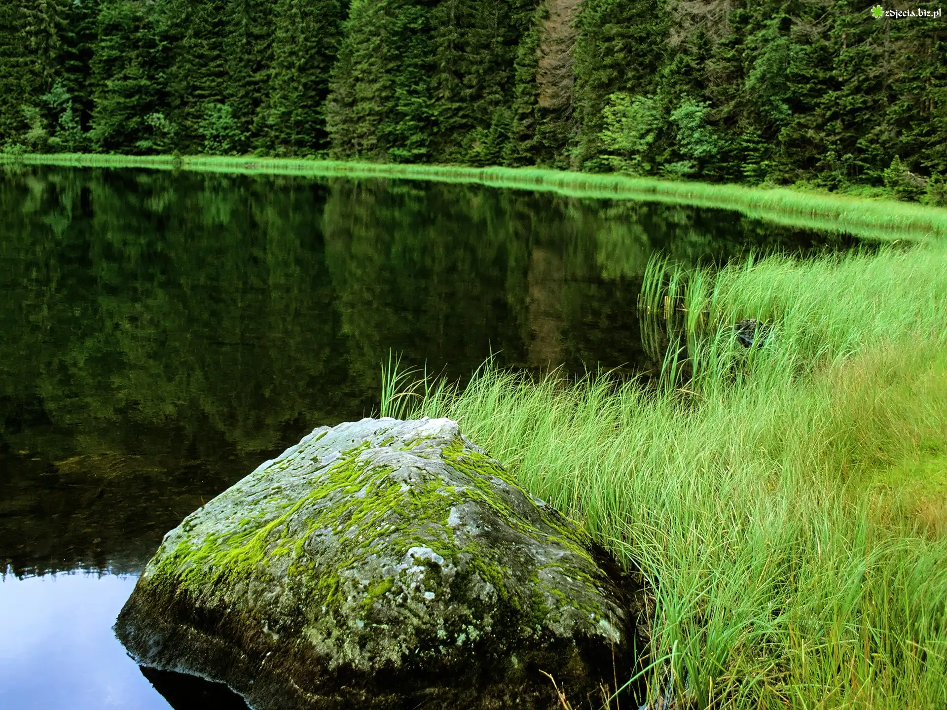 Zdjęcie Jezioro, Kamień, Trawa, Las