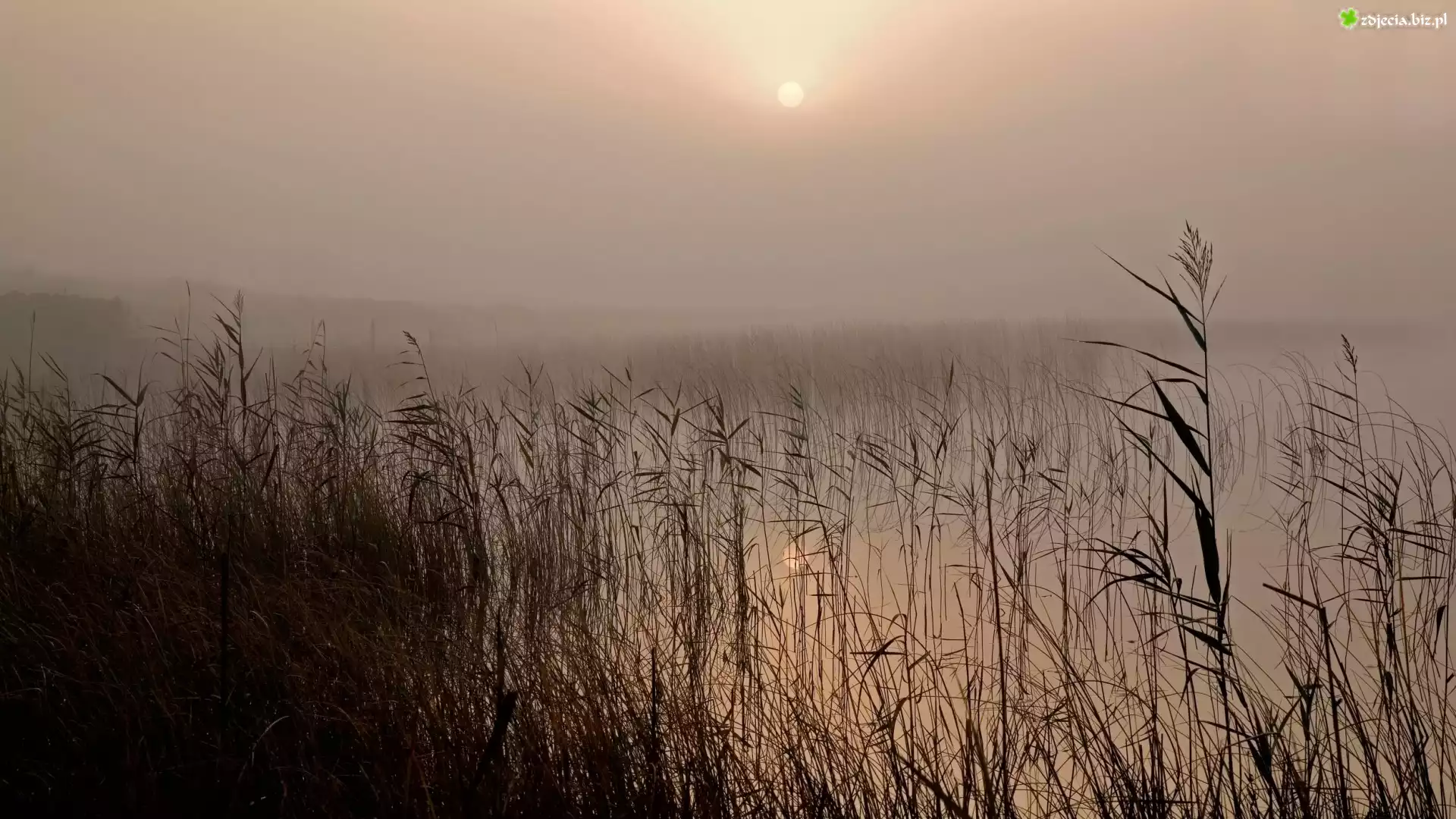 Zdjęcie Jezioro, Mgła, Trzciny, Trawa