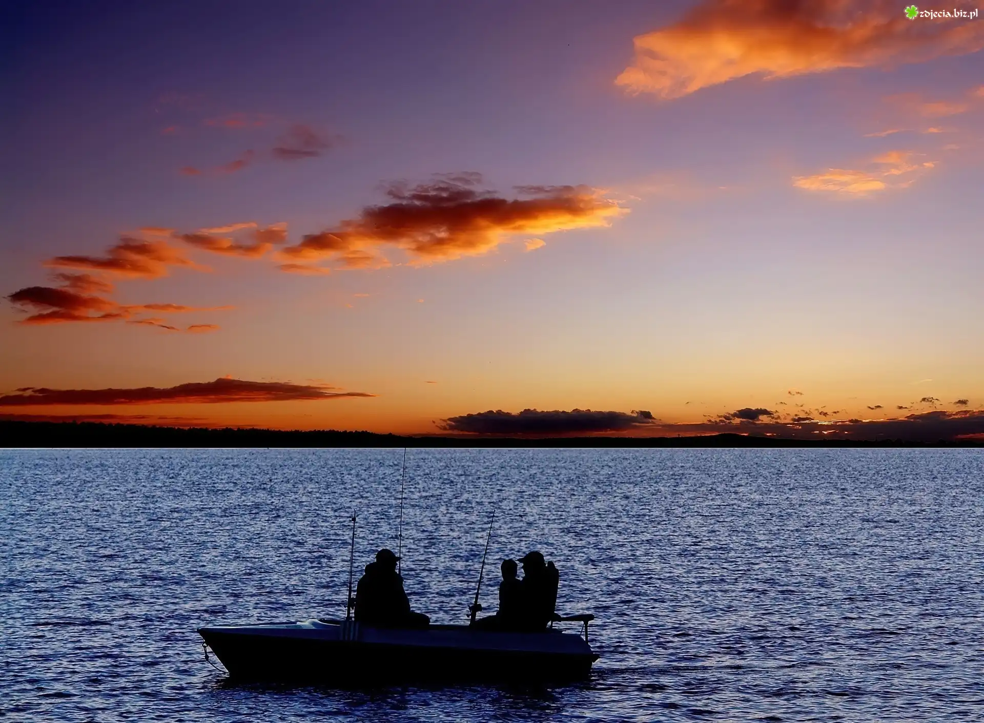 Zdjęcie Jezioro, Chmury, Wędkarze, Łódka