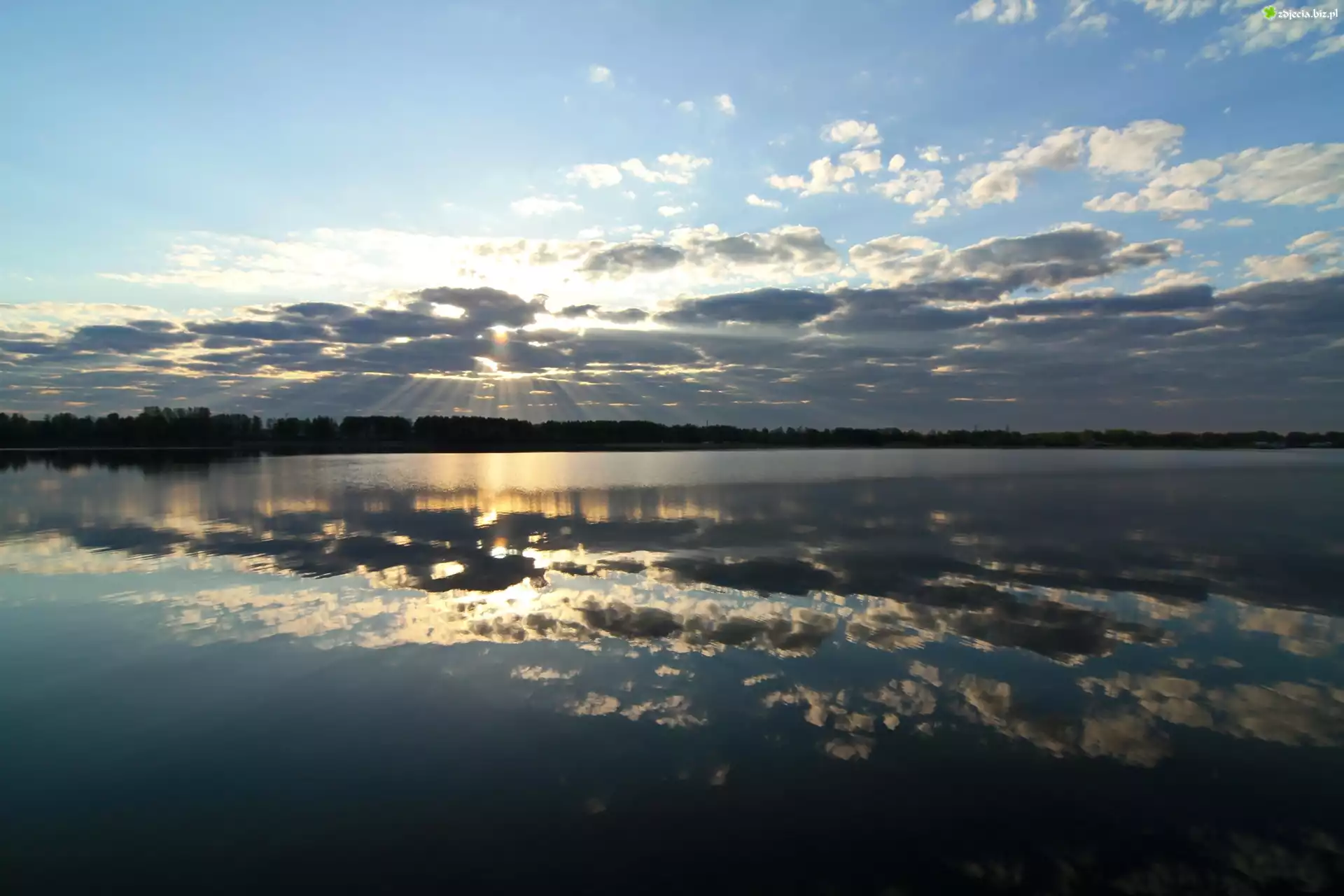 Zdjęcie Jezioro, Chmury, Przebijające, Światło, Odbicie