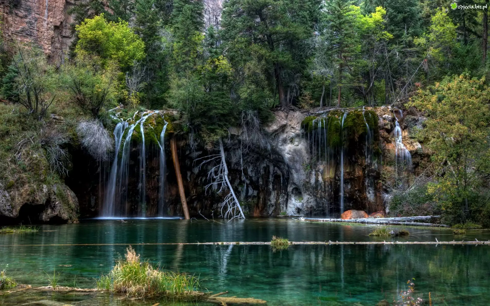Góry, Niebieski, Wodospad Tęczowy, Wodospad, Ptaki Wodospad, Zieleń, Kaskada, Mech Zima, Jezioro, Drzewa Wodospad Górska, Rzeka, Wodospad Skały, Wodospad Wodospad, Góry Wodospad Kaskada, Na, Rzece, Kłoda Zachód, Słońca, Jezioro, Krzewy Kanion, Kaskada, Wody Chorwacja, Park, Narodowy, Wodospad Jezioro, Trawa, Drzewa, Ciemne, Chmury