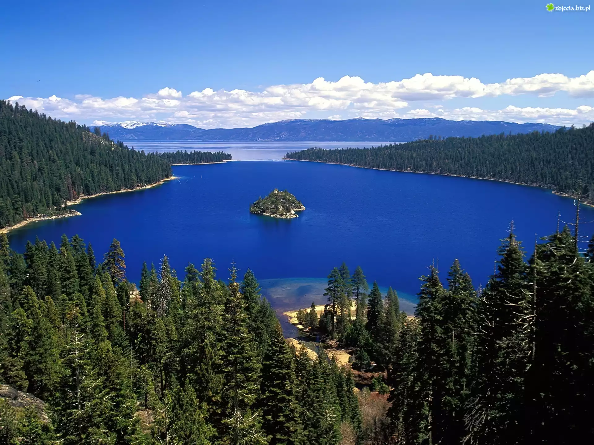 Zdjęcie Jezioro, Lasy, Wysepka, Chmury