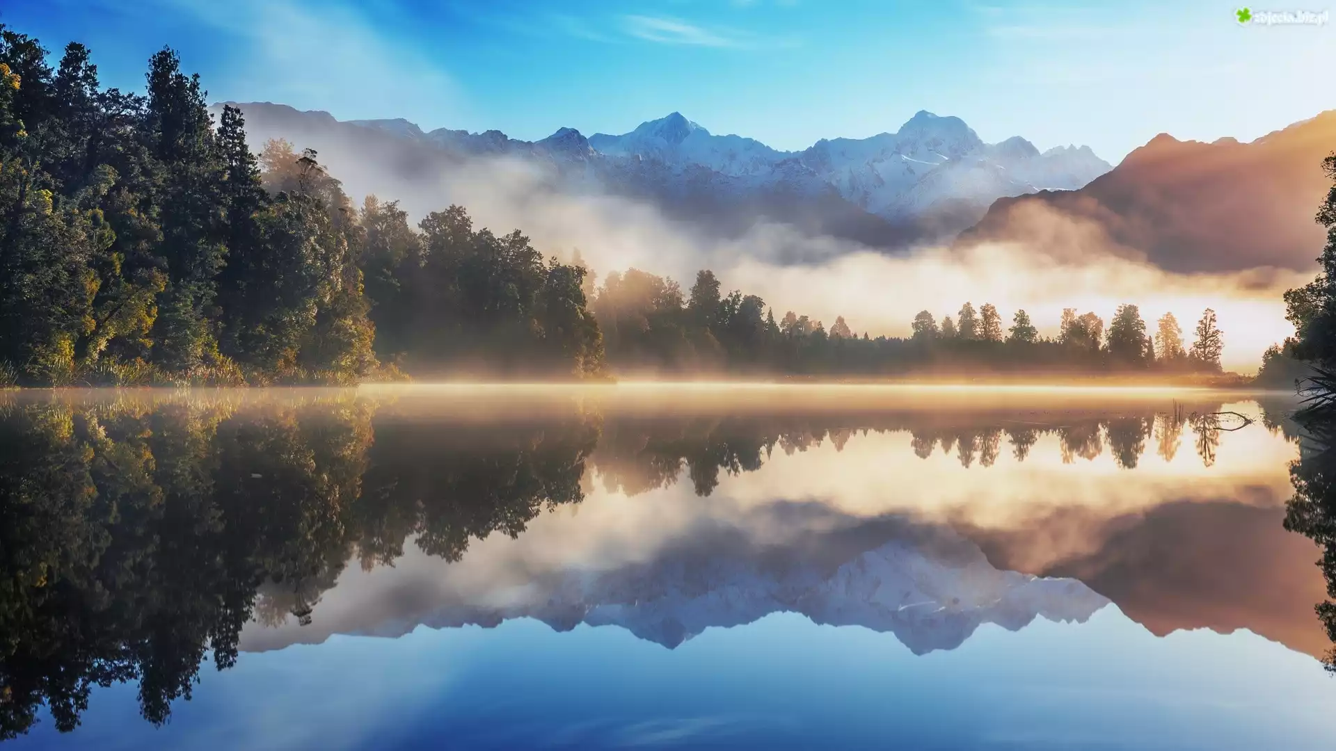 Zdjęcie Jezioro, Las, Mgła, Wzgórza, Odbicie