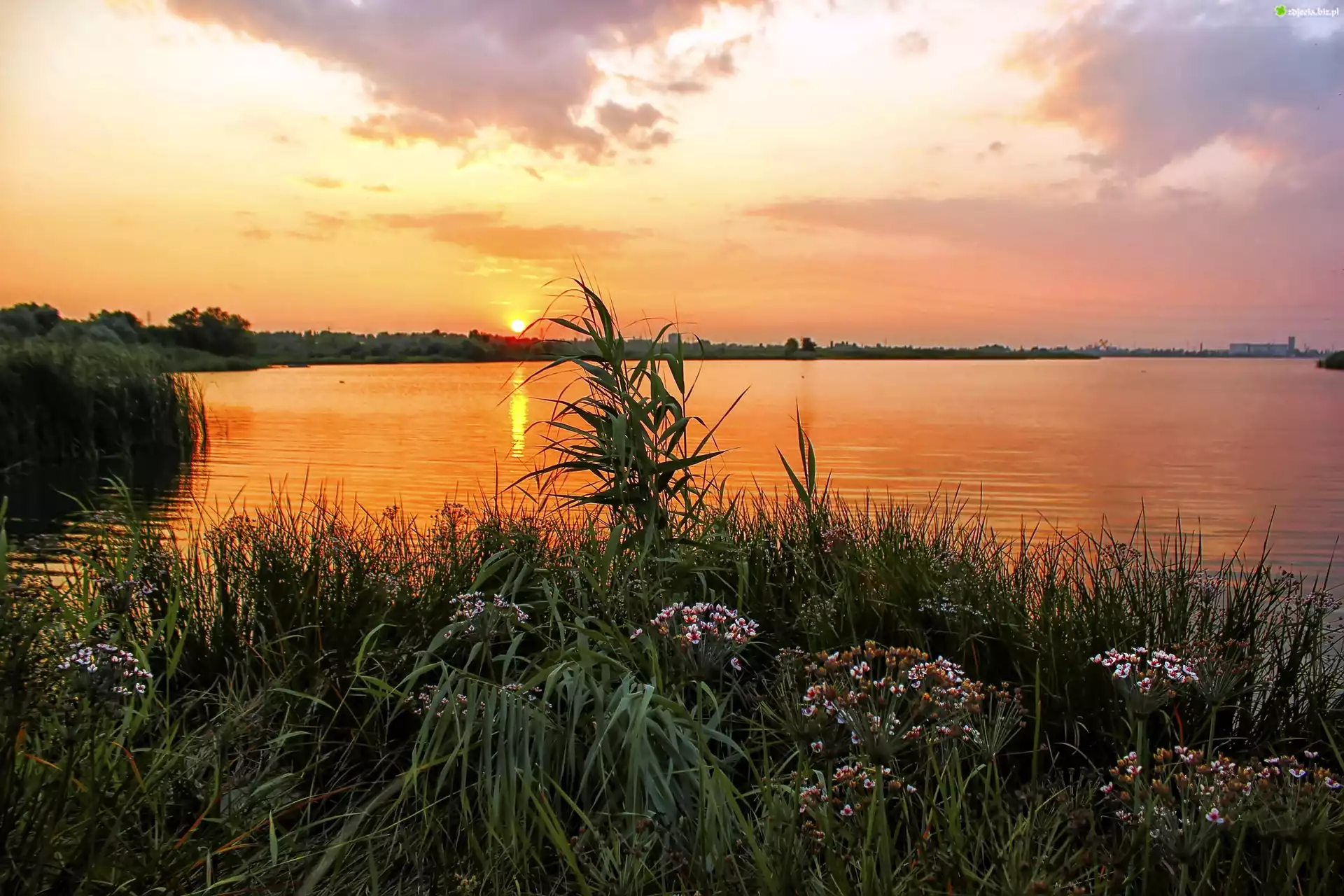 Zdjęcie Jezioro, Łąka, Zachód słońca