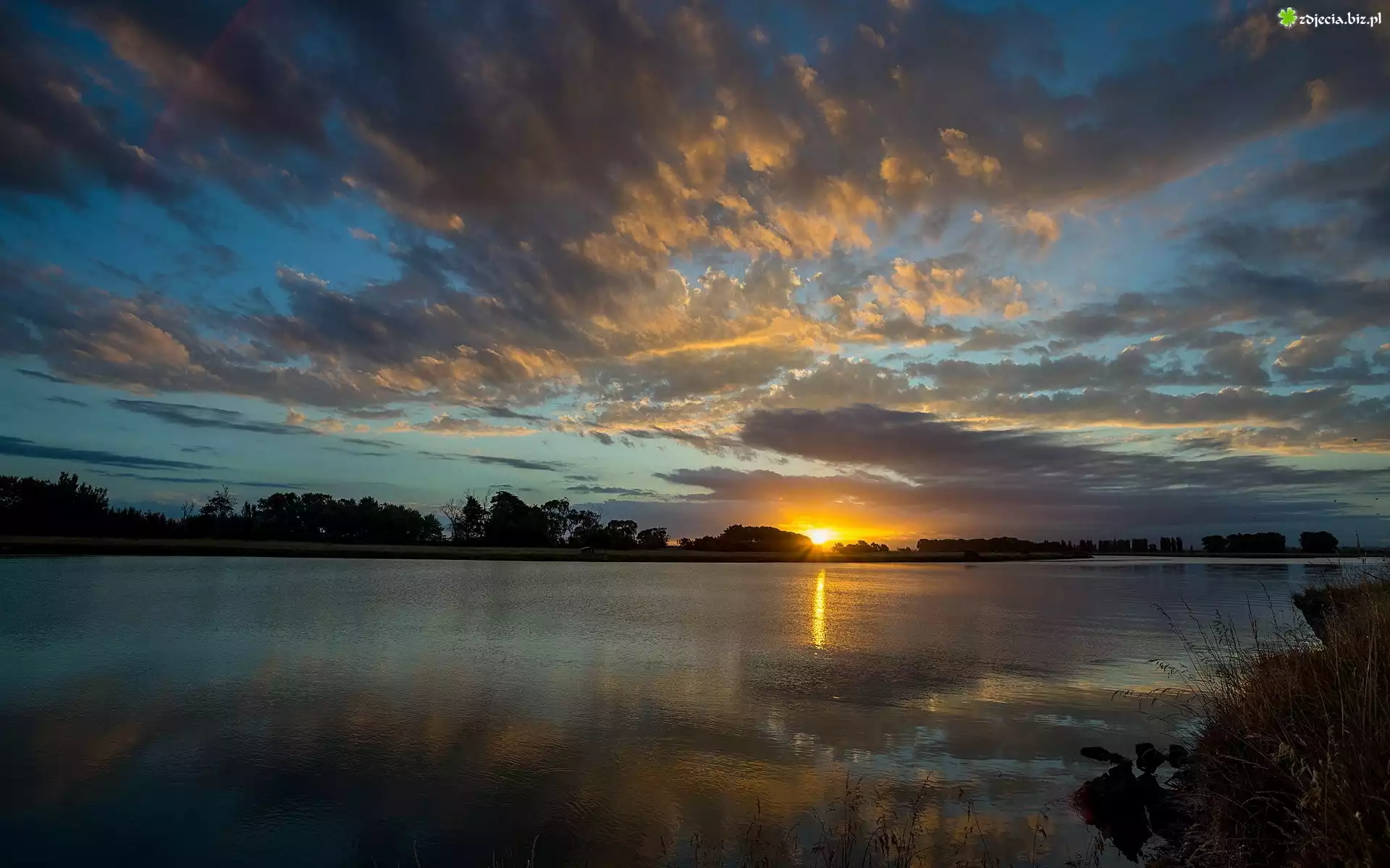 Zdjęcie Jezioro, Chmury, Zachód Słońca