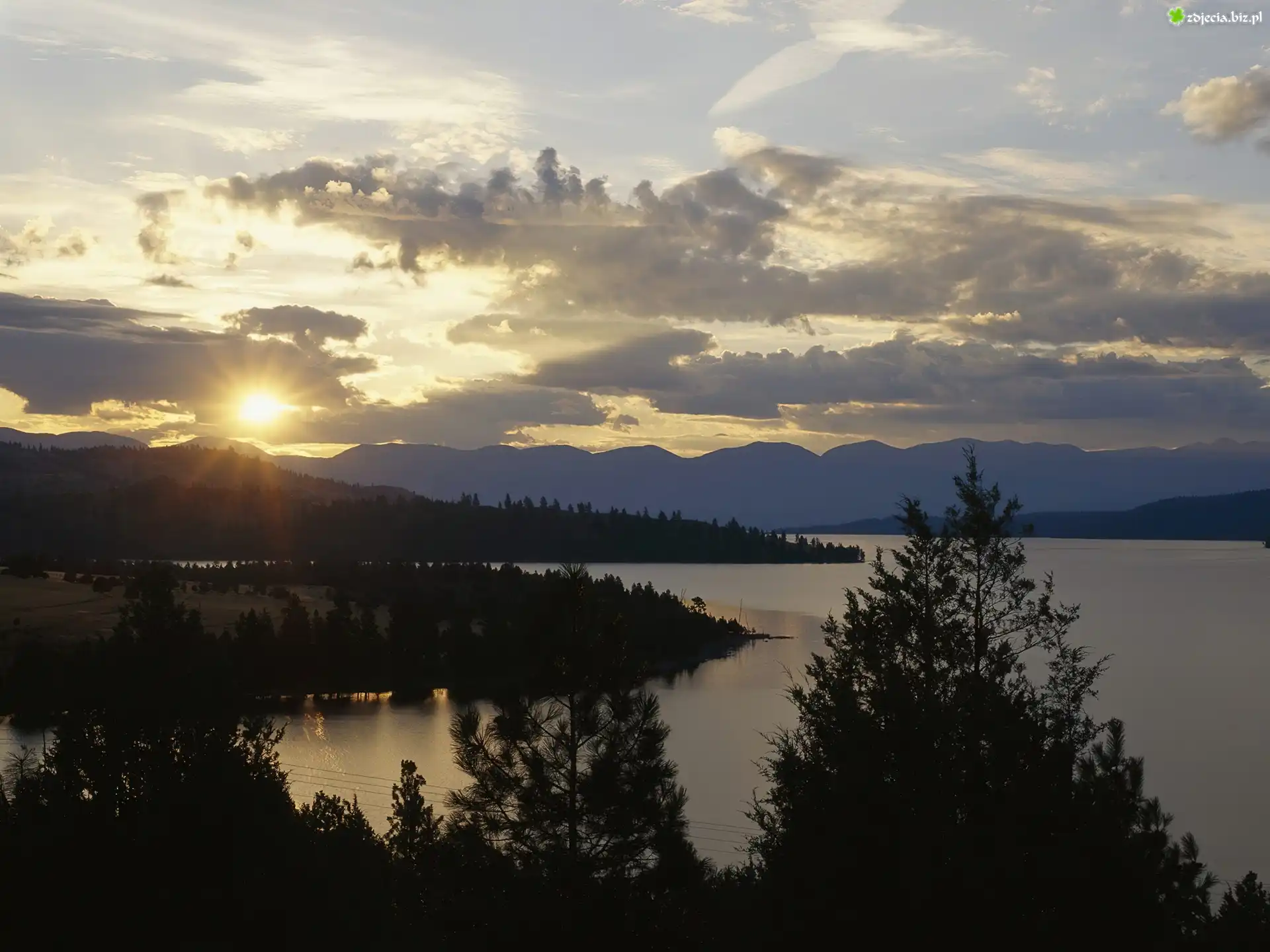 Zdjęcie Jezioro, Chmury, Zachód Słońca