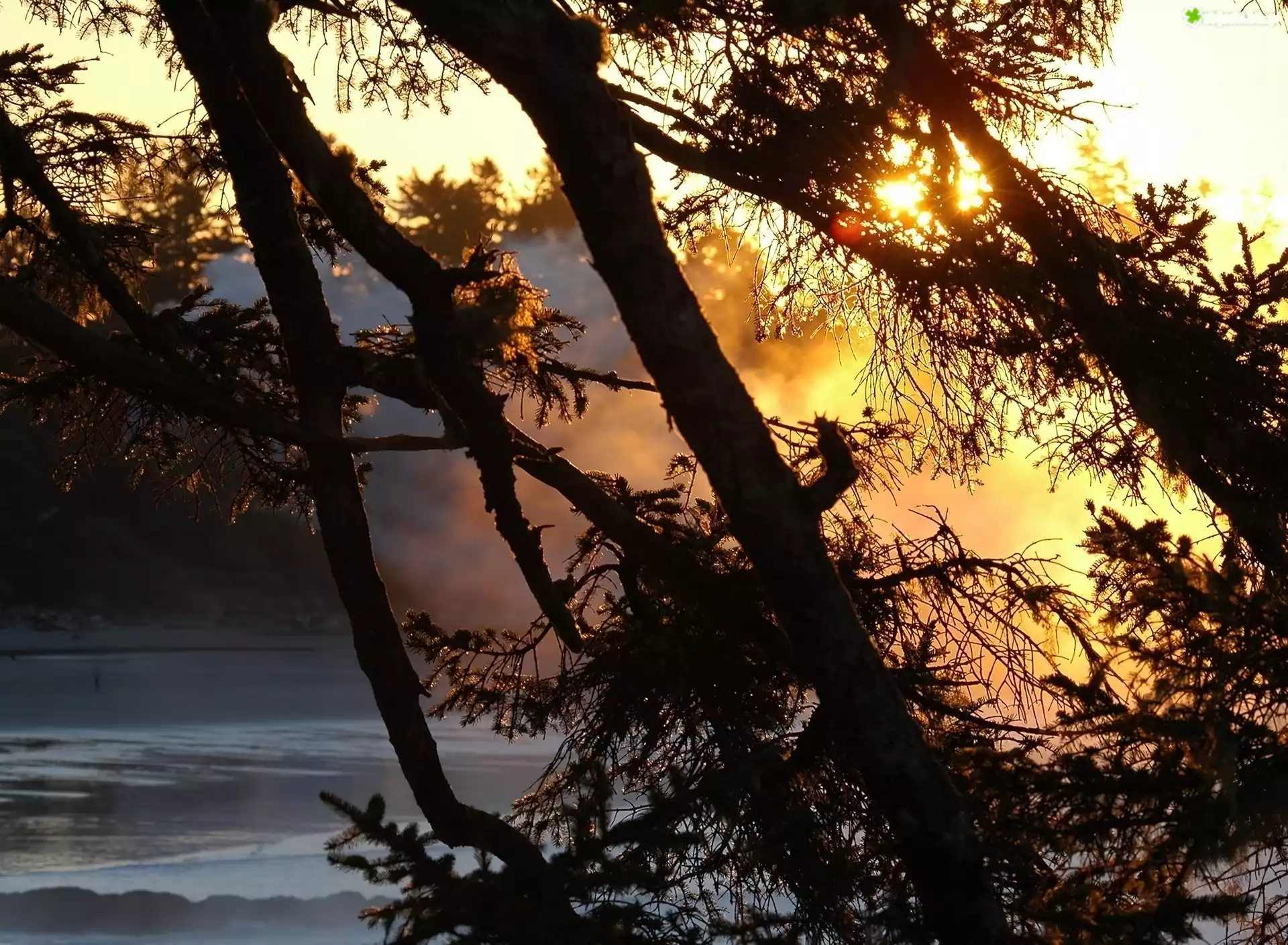 Zdjęcie Jezioro, Drzewa, Zachód Słońca