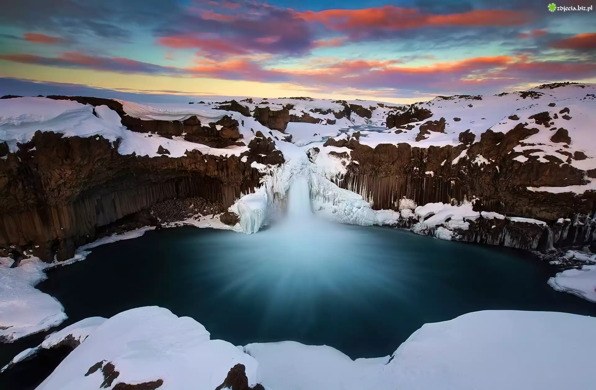 Zdjęcie Jezioro, Skały, Zachód, Słońca