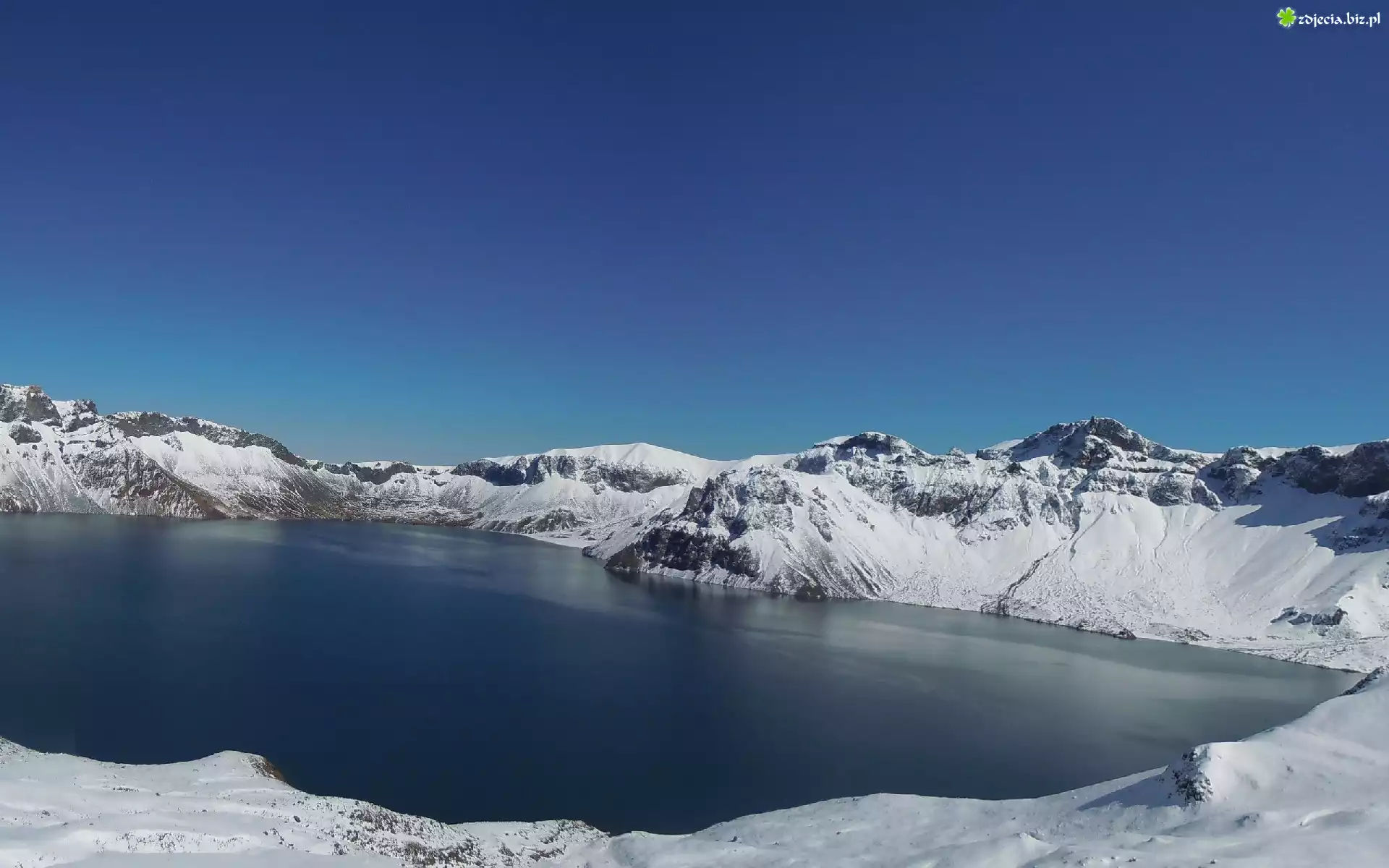 Zdjęcie Jezioro, Śnieg, Zaspy, Góry