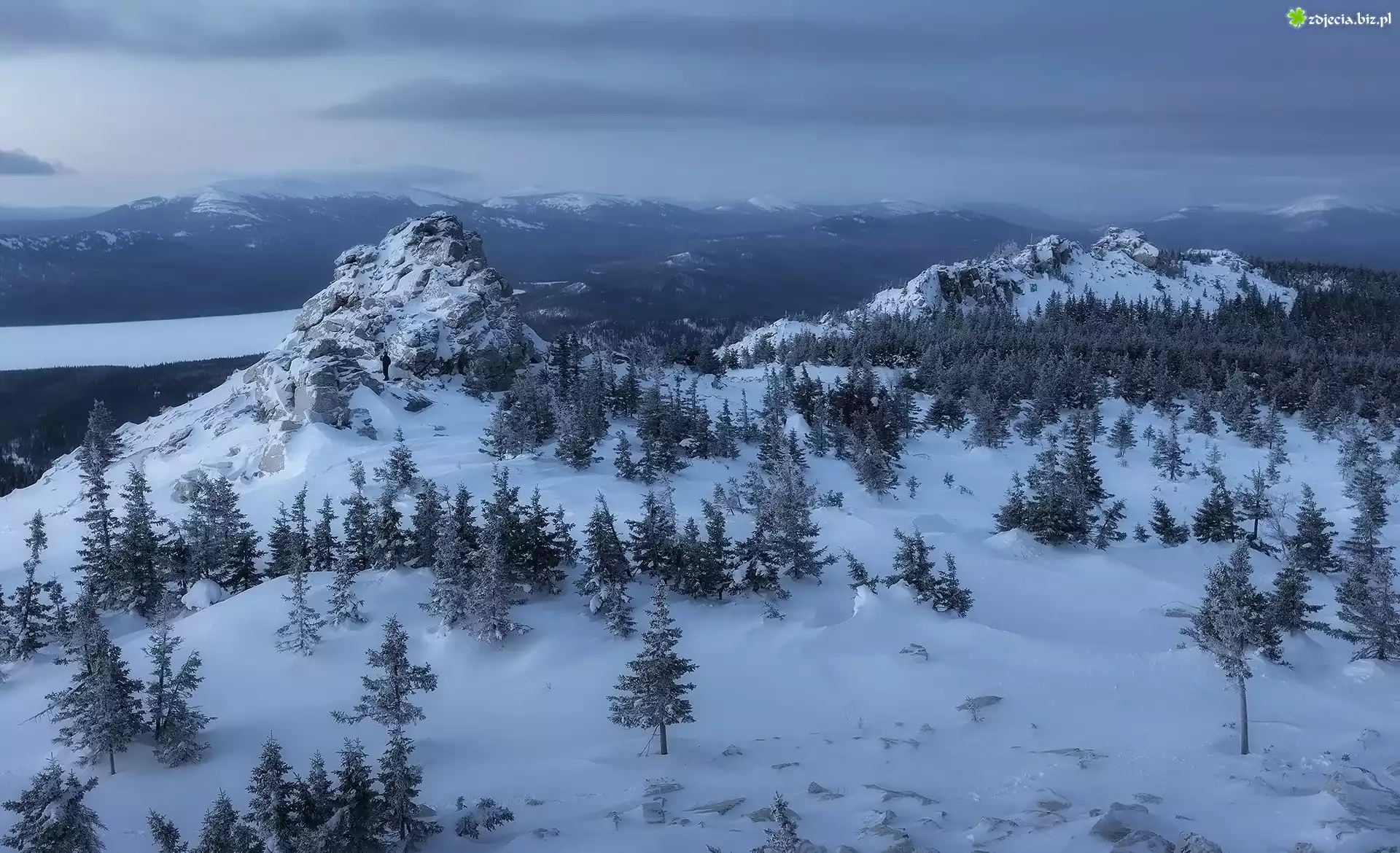 Zdjęcie Zima, Góry Ural, Pasmo Nurgusz, Jezioro, Park Narodowy Ziuratkul, Obwód czelabiński, Rosja |