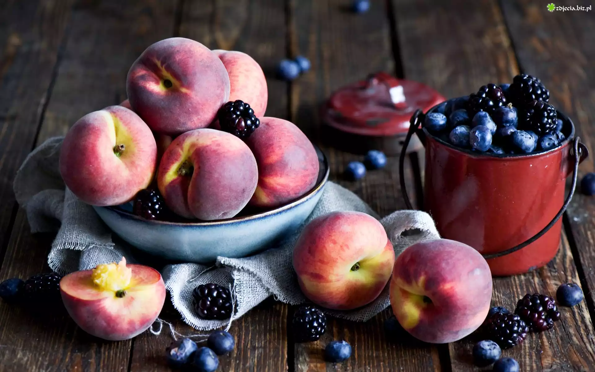Zdjęcie Jeżyny, Brzoskwinie, Jagody, Miska