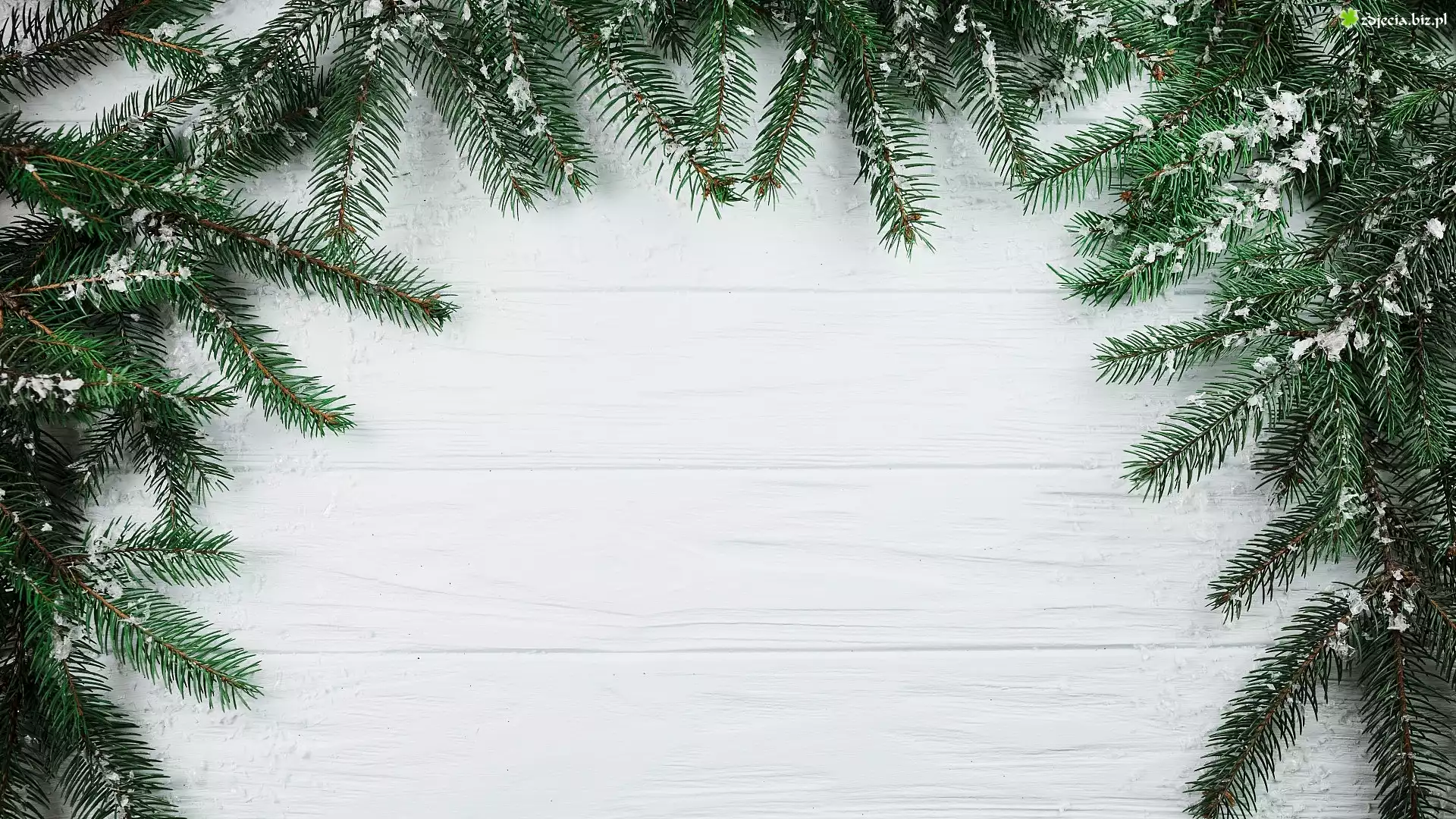 Zdjęcie Jodła, Gałązki, Śnieg, Deski