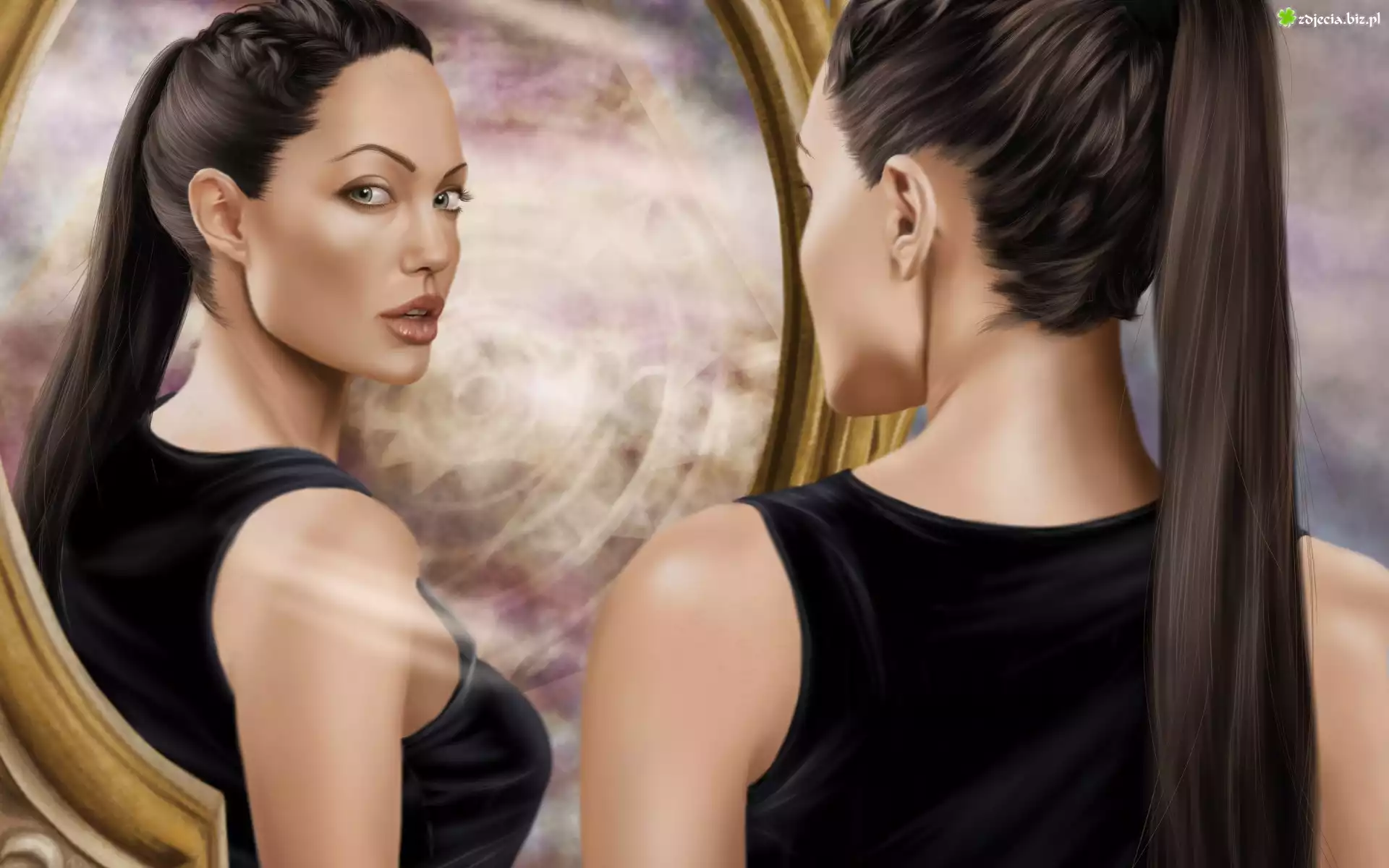 Zdjęcie Angelina Jolie, Lustro, Twarz, Tomb Raider, Lara Croft