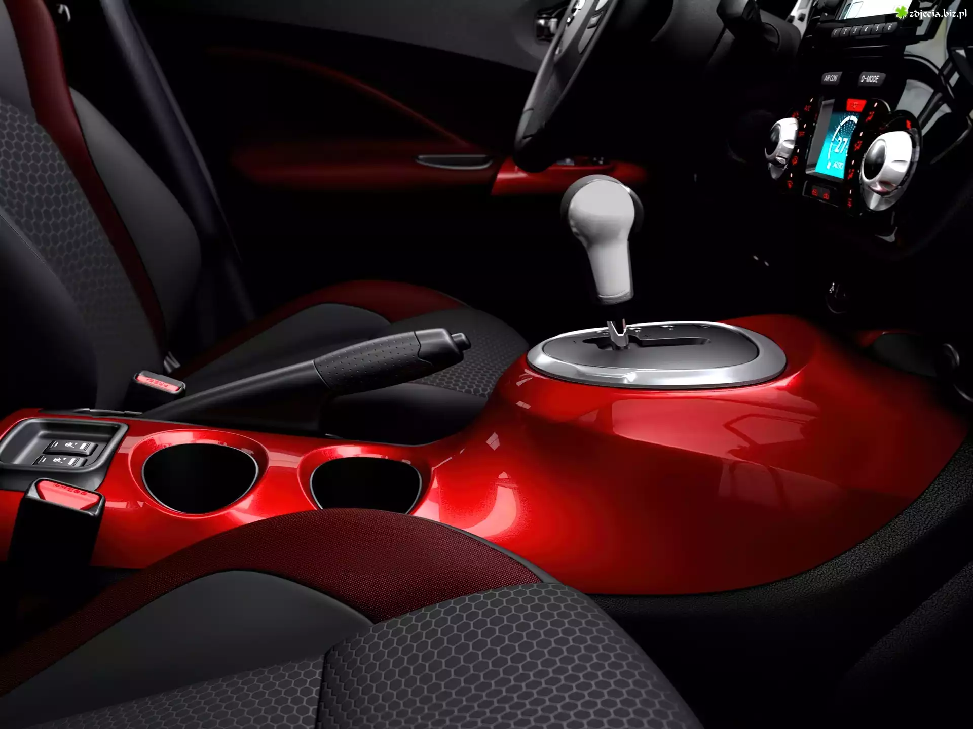 Nissan Juke, Oszklone, Budynki Nissan Juke, Morze Nissan Juke, Automat Nissan Juke, Okrągłe, Reflektory Nissan Juke II, Druga generacja Nissan Juke, Kierownica Nissan Juke, Czerwone, Wnętrze Nissan Juke, Salon Prawa, Strona, Nissan Juke Nissan Juke, Bok Nissan Juke, 2010