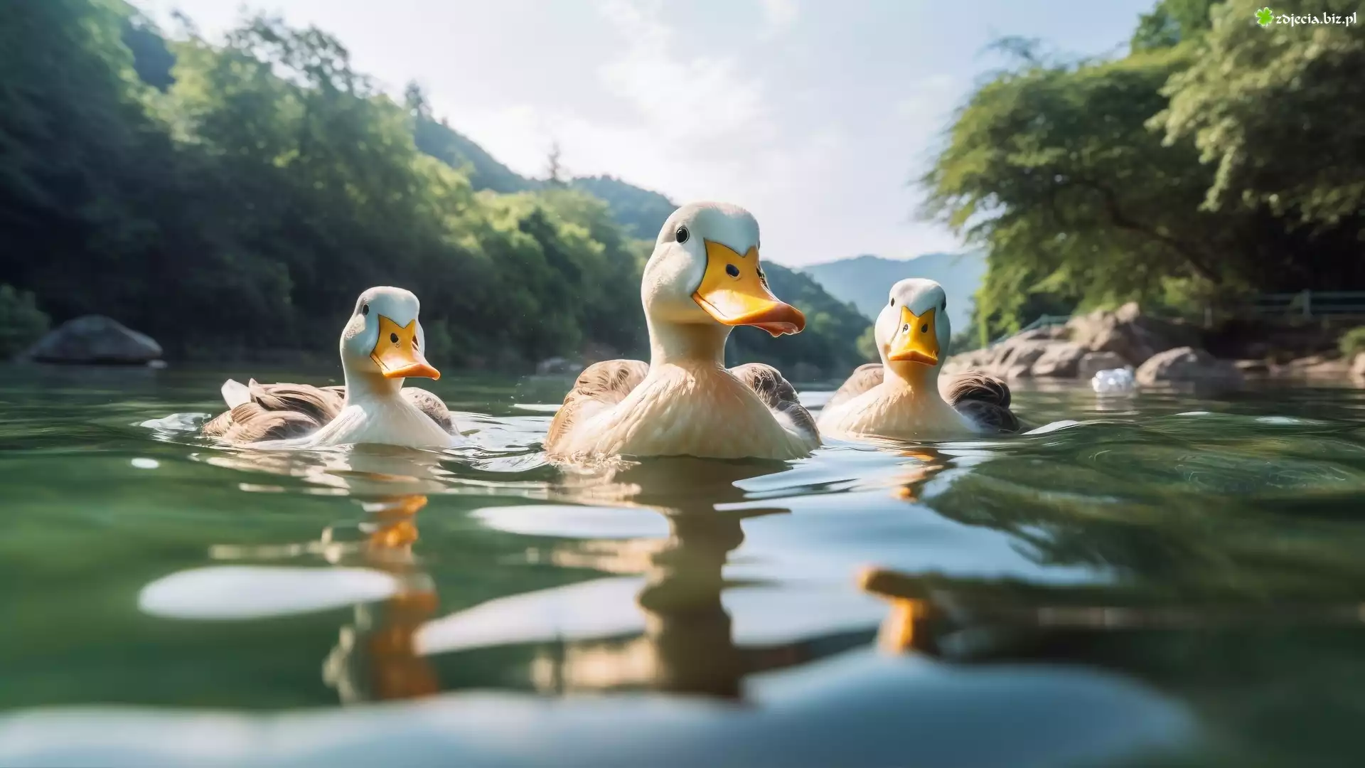 Zdjęcie Kaczki, Woda, Grafika