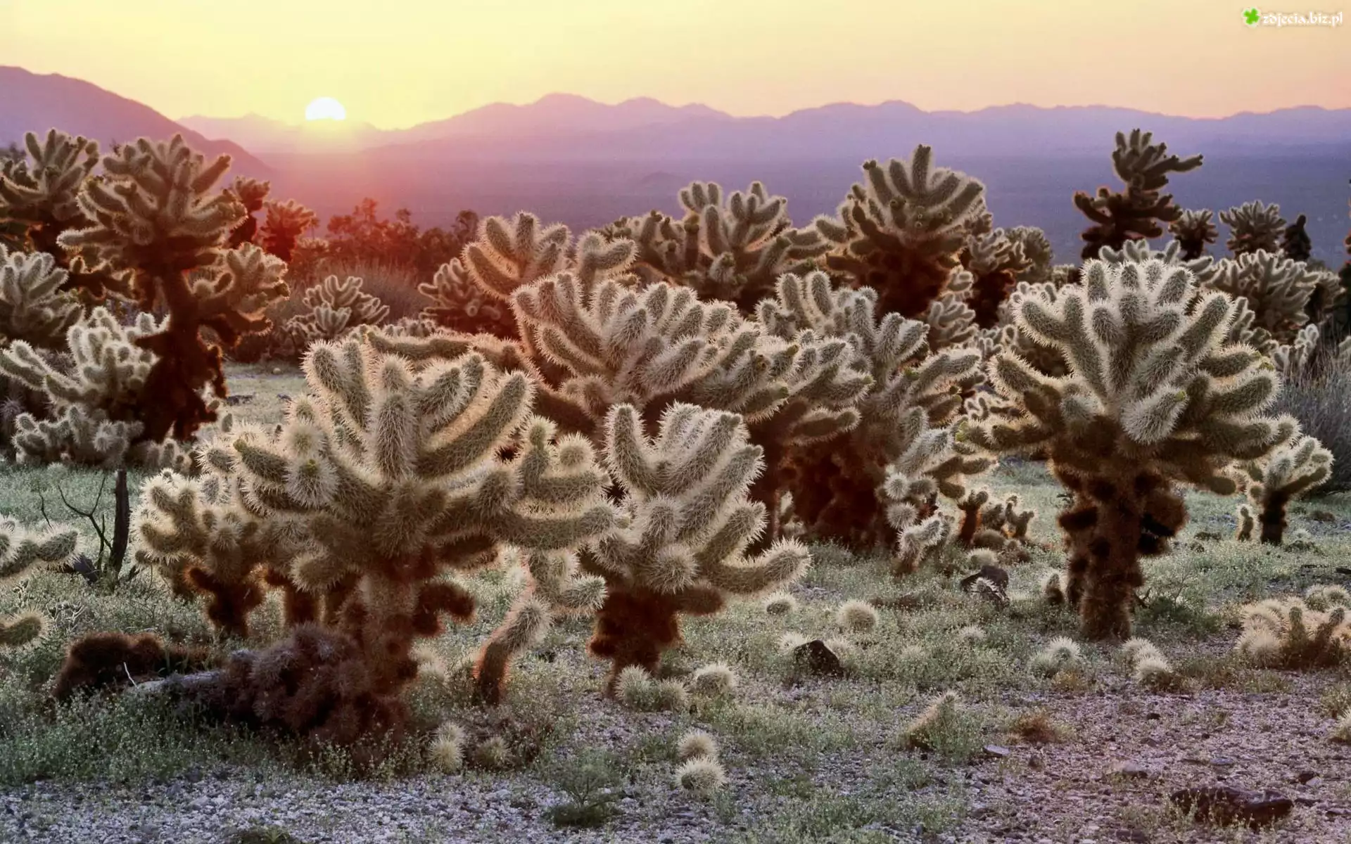 Zdjęcie Kaktusy, Góry, Promienie, Słońca