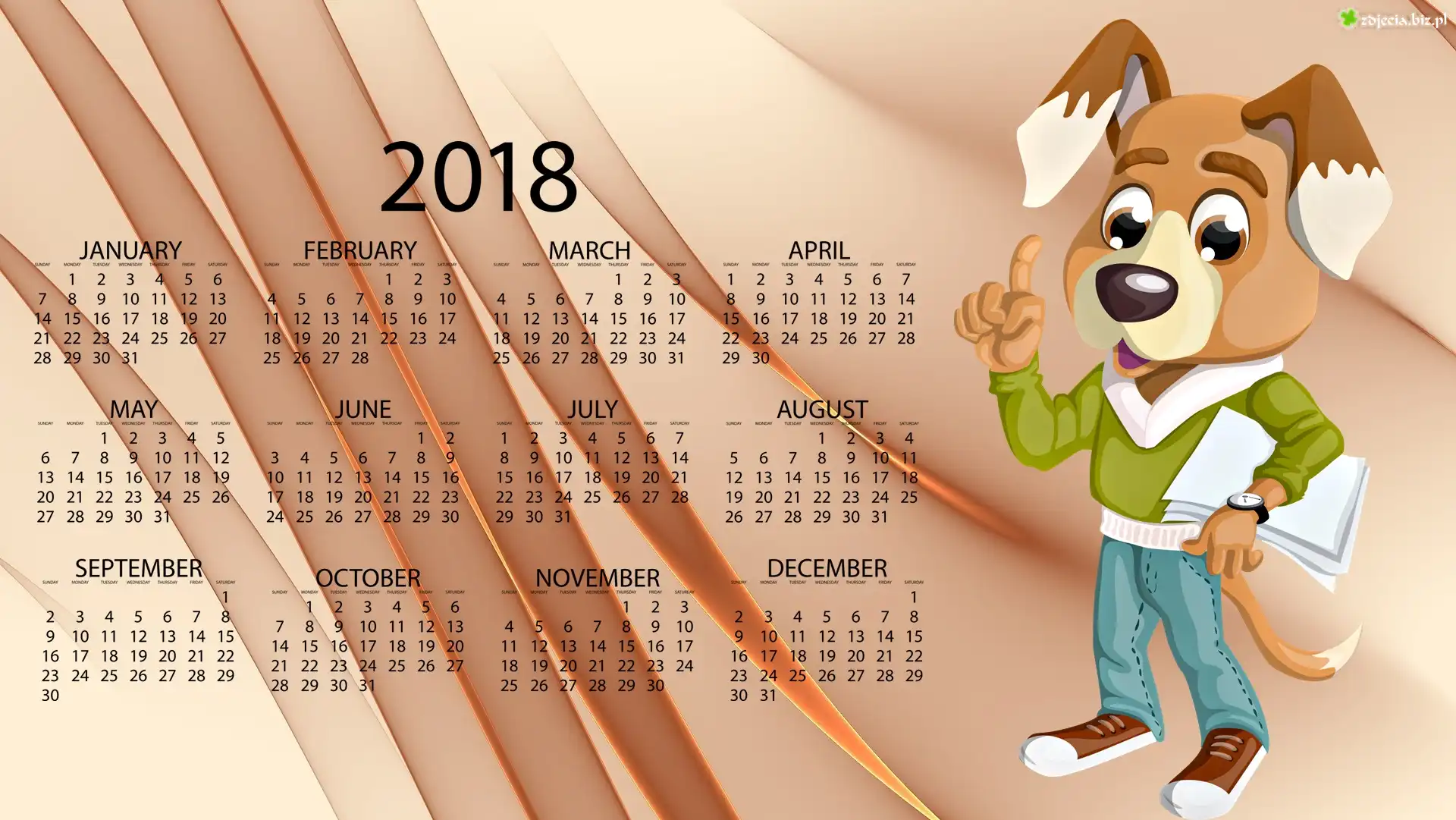 Zdjęcie Kalendarz, Rok 2018, Pies, Grafika 2D