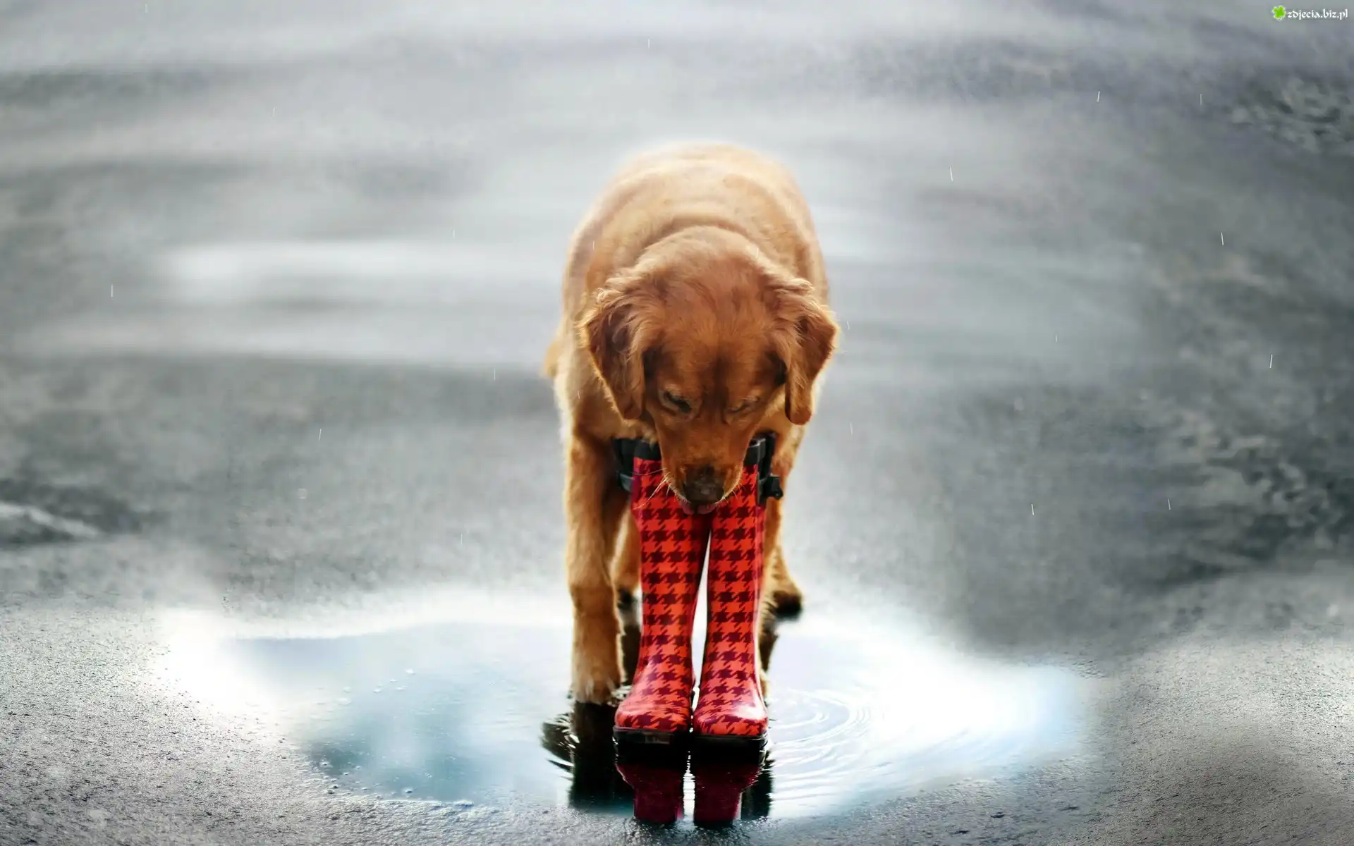 Zdjęcie Pies, Kalosze, Deszcz