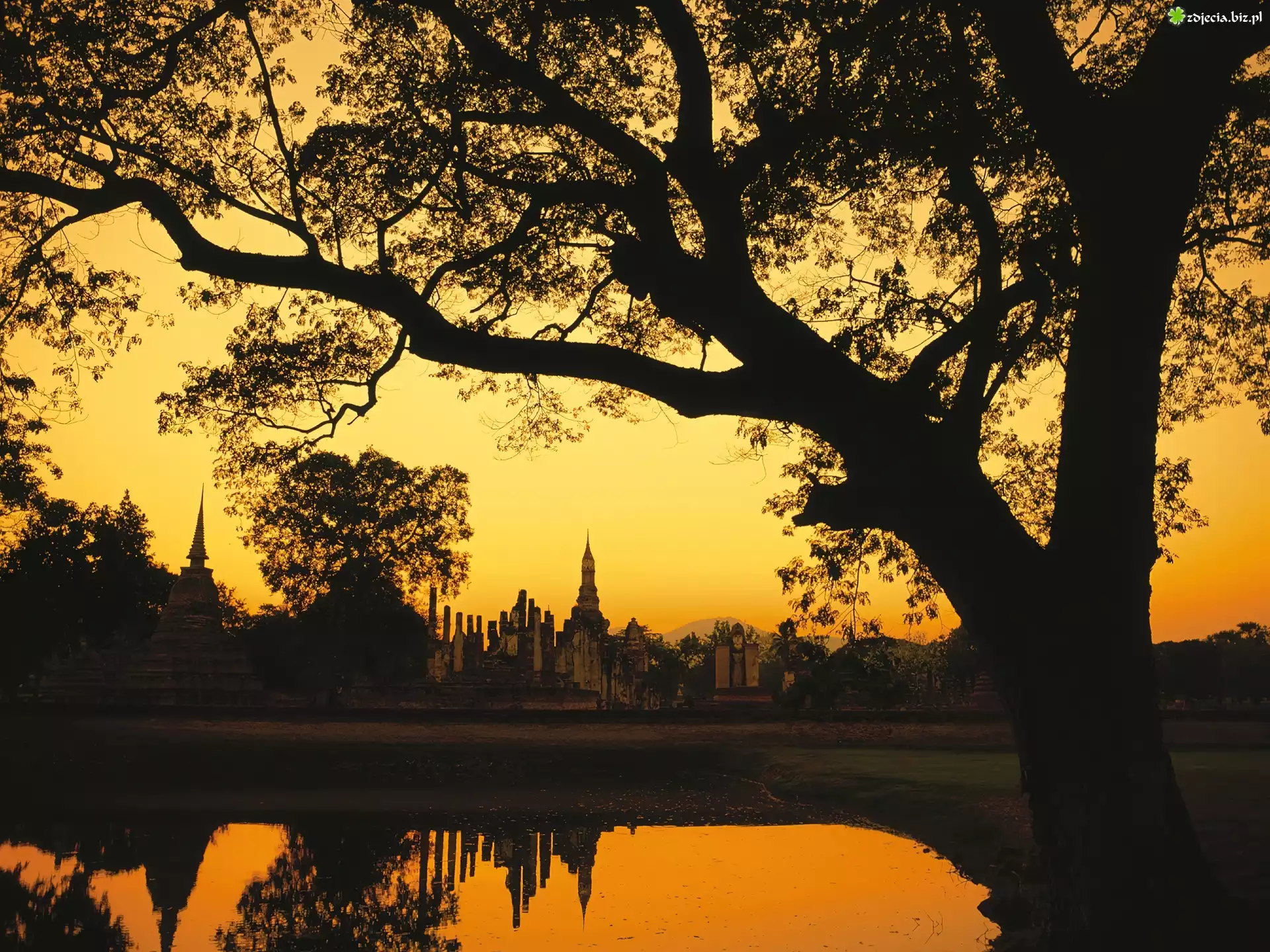 Zdjęcie Kambodża, Budowle, Drzewo, Jezioro