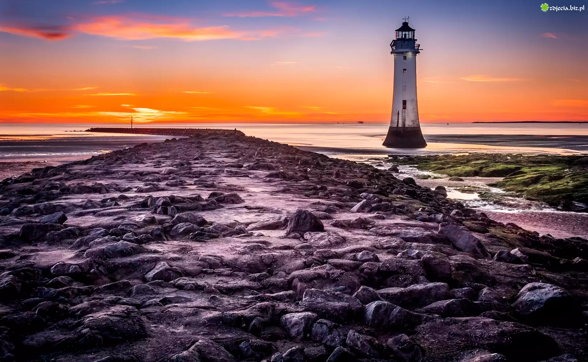Zdjęcie Anglia, New Brighton, Latarnia morska New Brighton, Morze, Kamienie