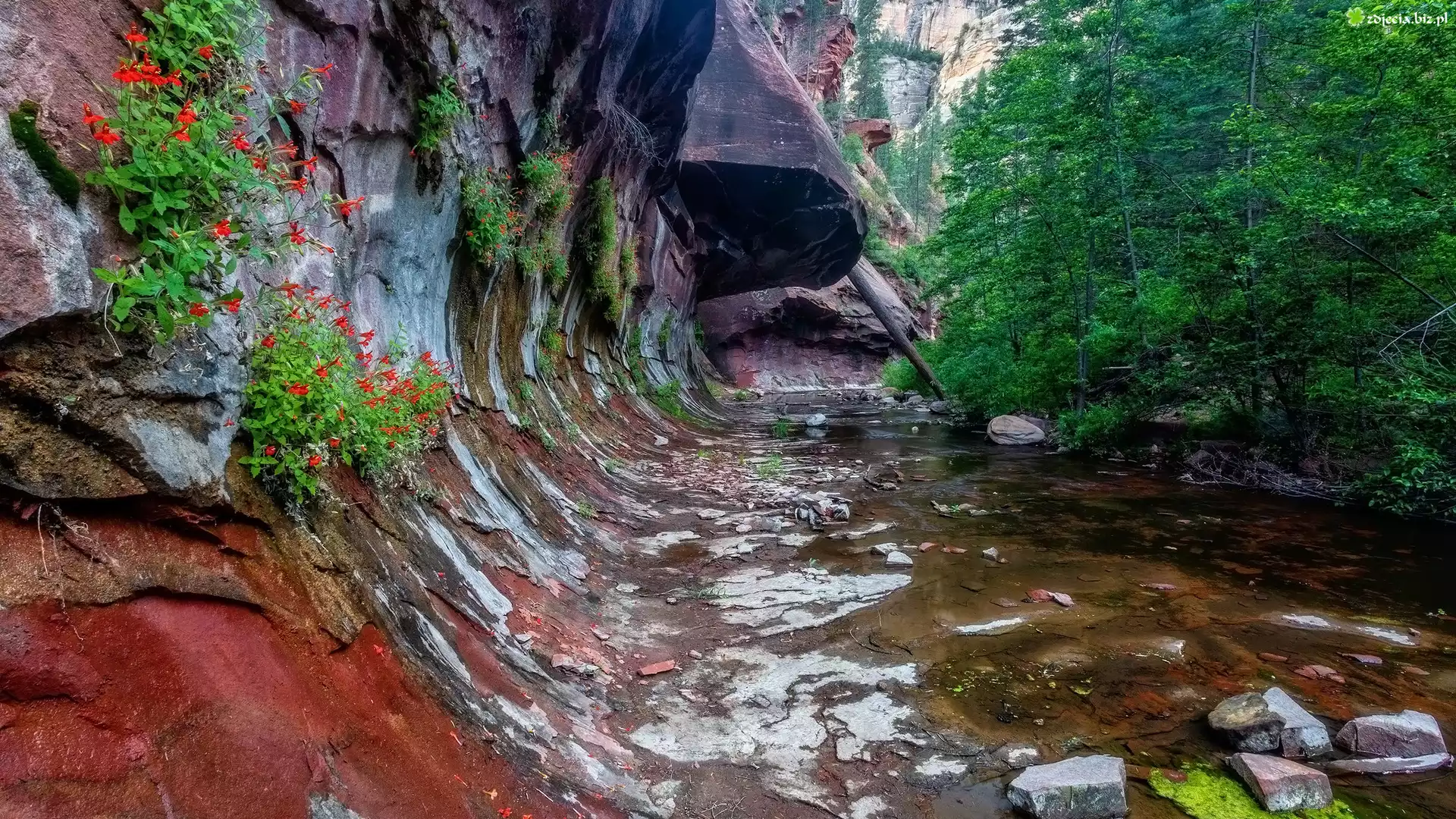 Zdjęcie Drzewa, Rzeka, Skały, Kamienie