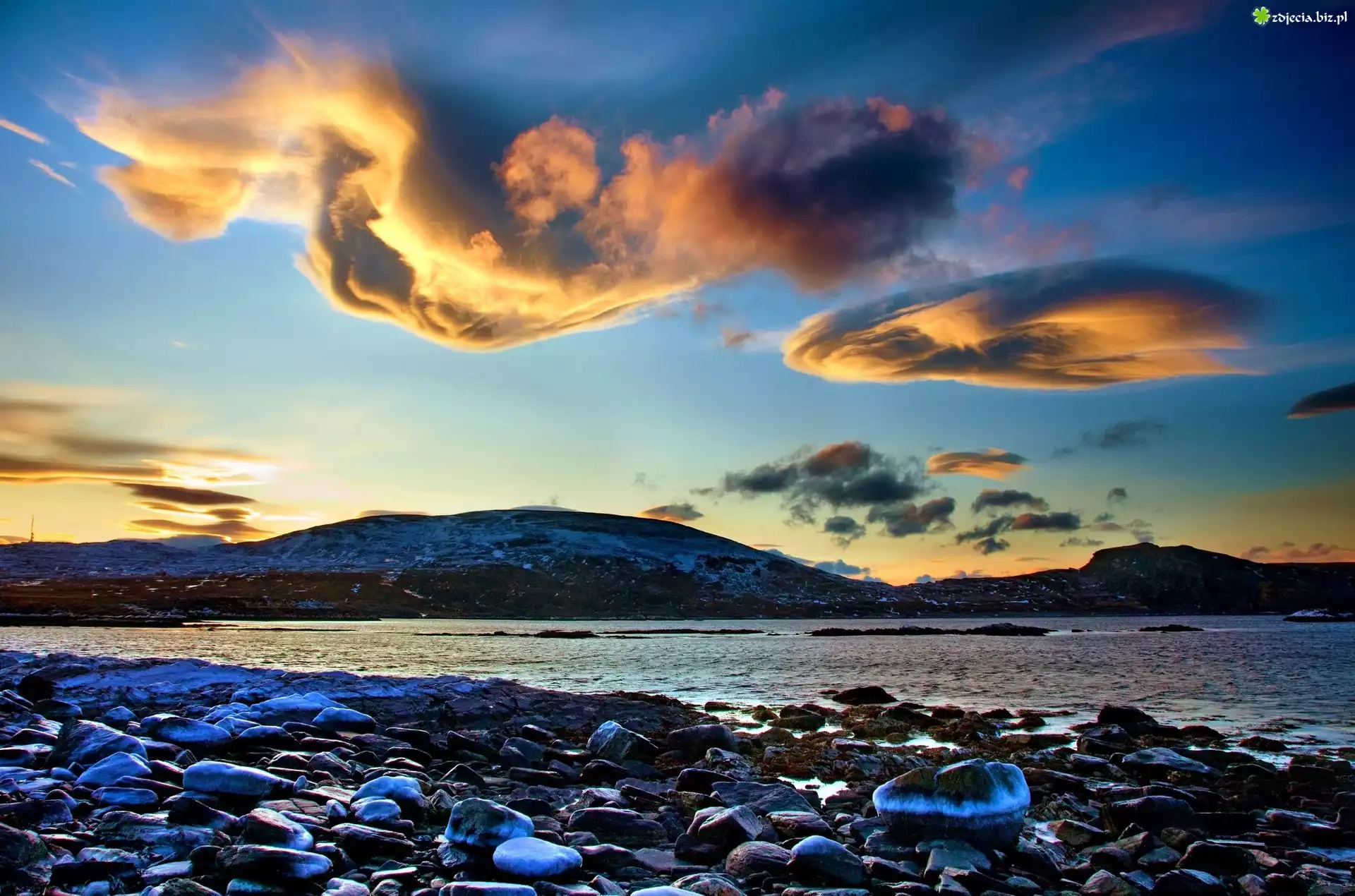 Zdjęcie Jezioro, Kamienie, Chmury