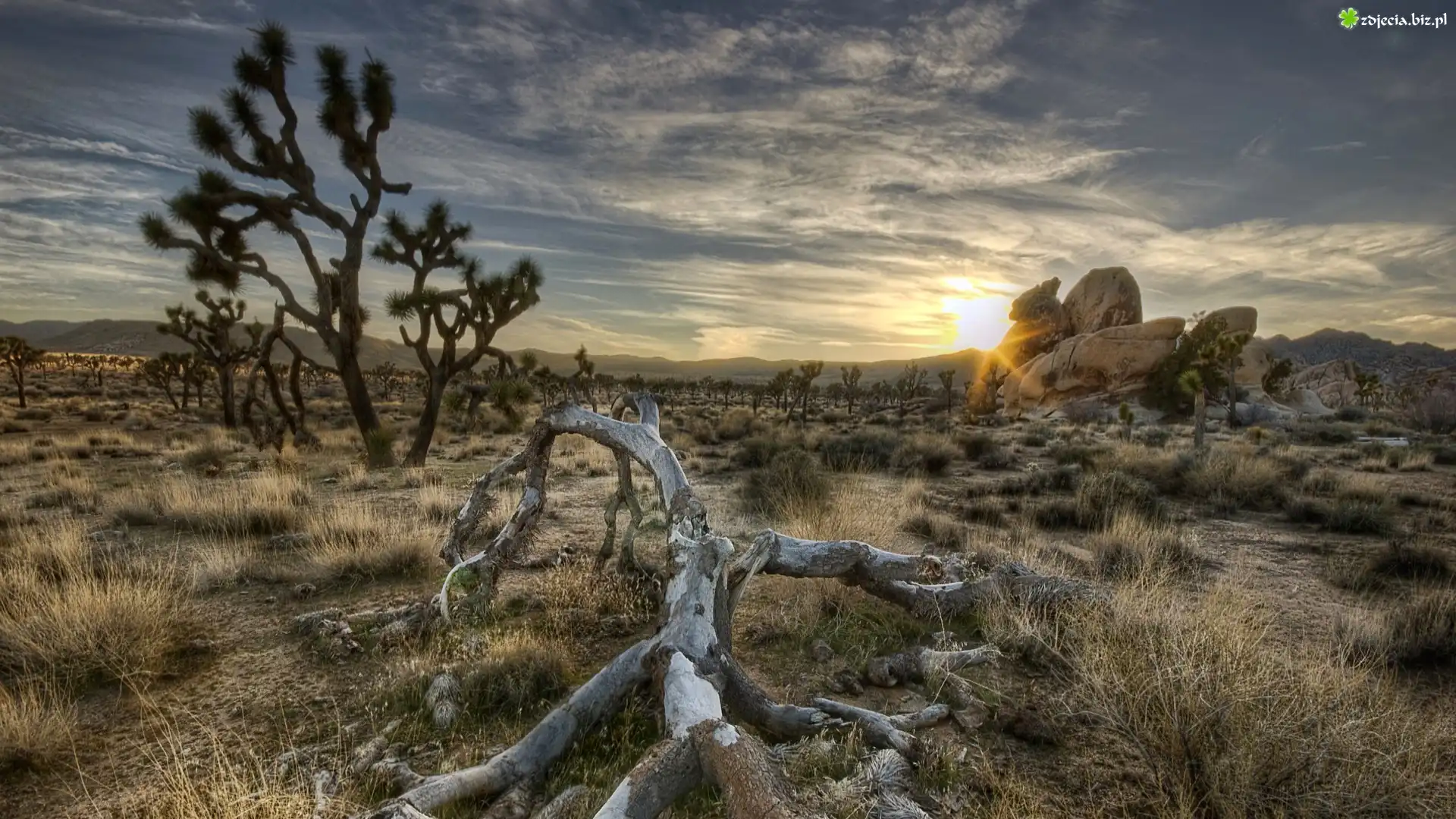 Zdjęcie Drzewo, Kamienie, Konar, Drzewa, Suche, Trawy, Promienie, Słońca