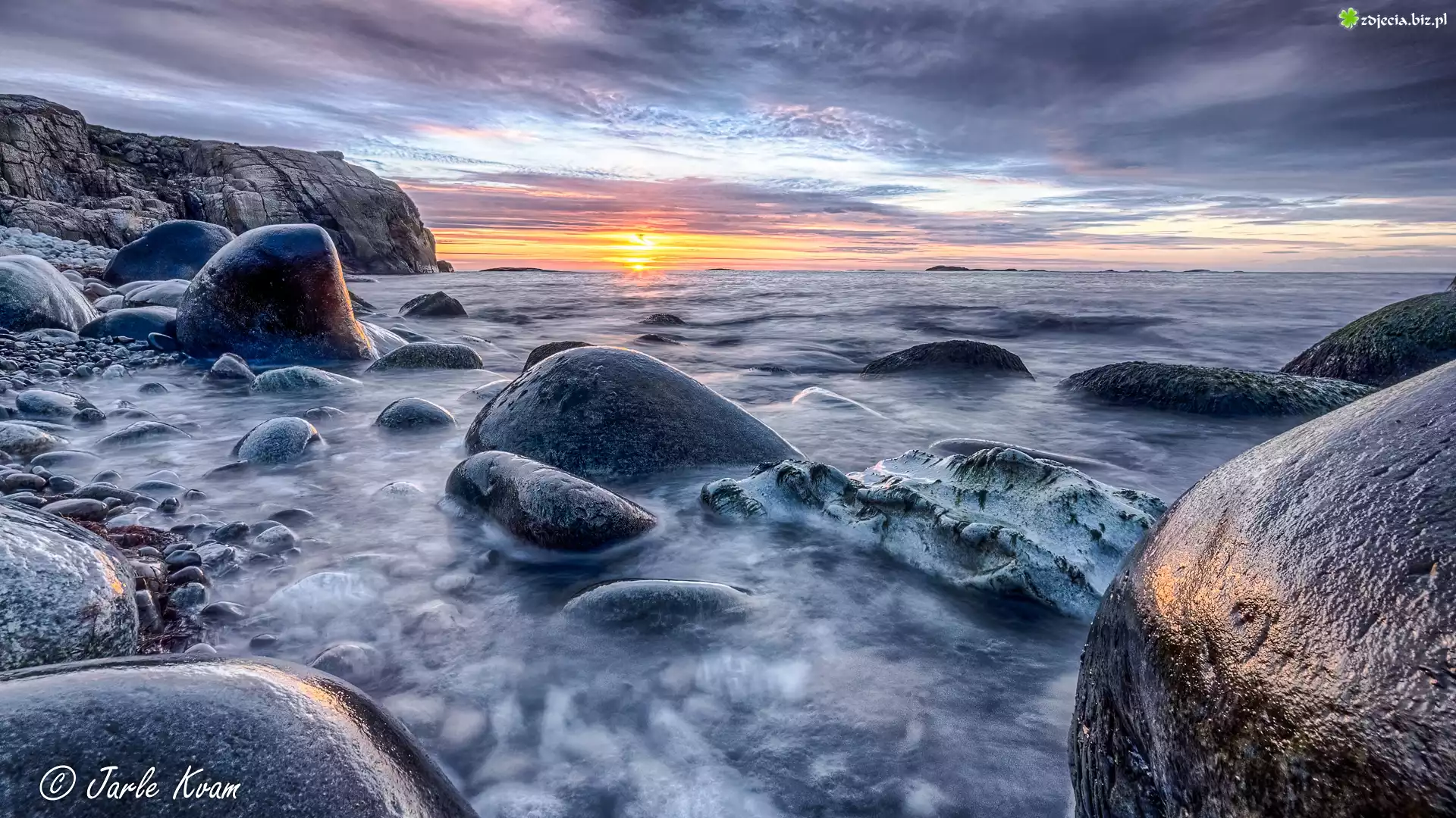 Zdjęcie, Morze, Skały, Duże, Kamienie, Wschód słońca