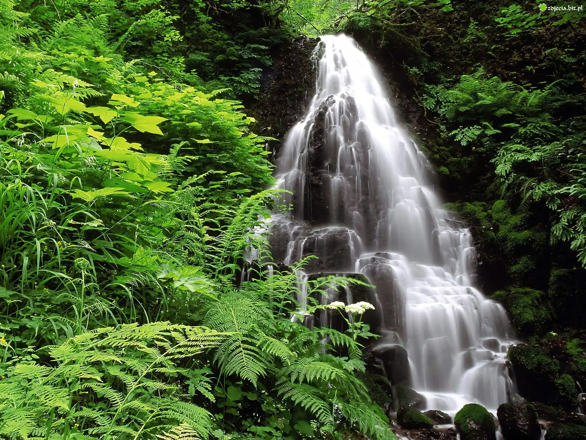 Zdjęcie Wodospad, Kamienie, Paprocie