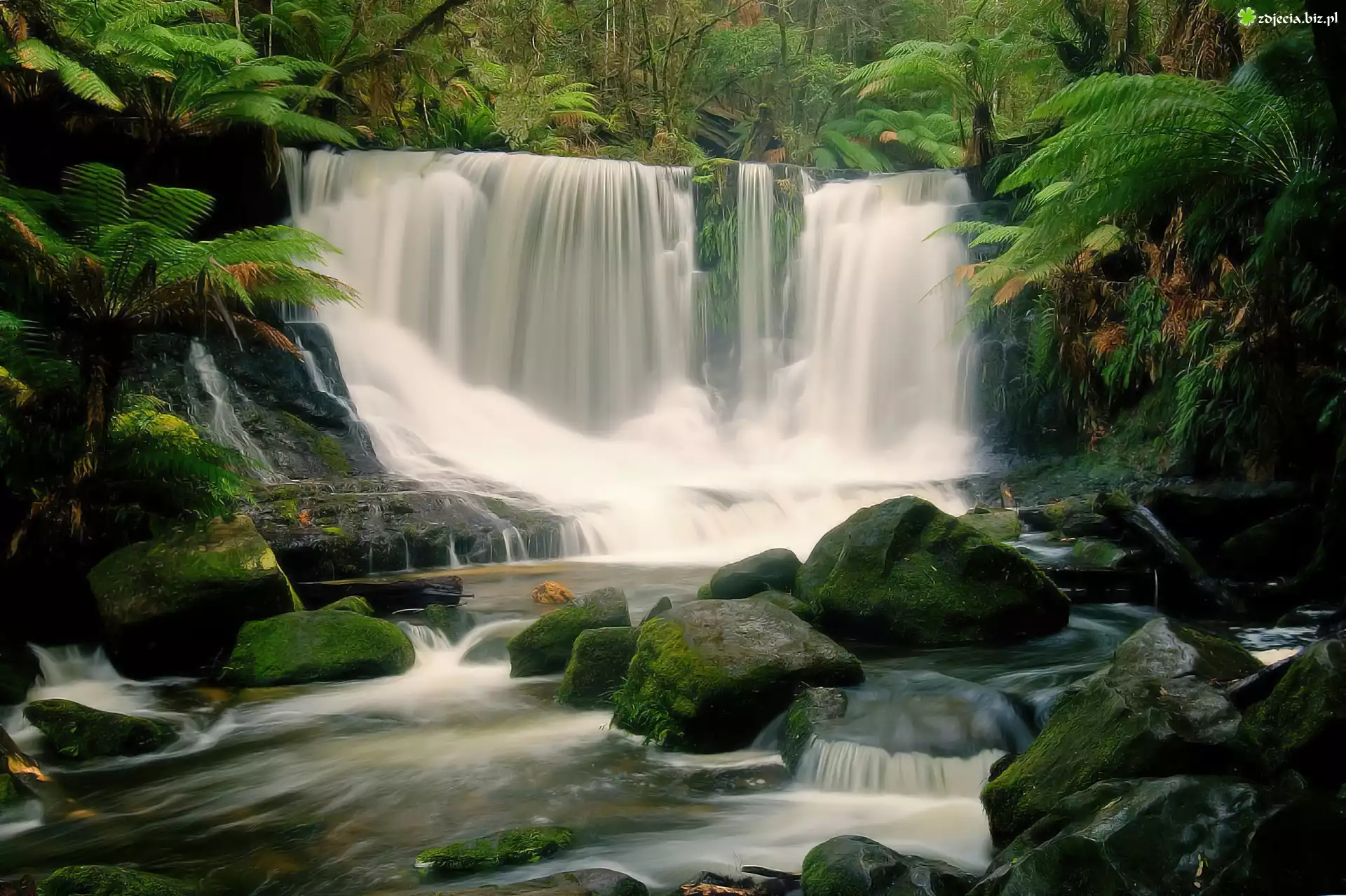 Zdjęcie Wodospad, Kamienie, Rośliny